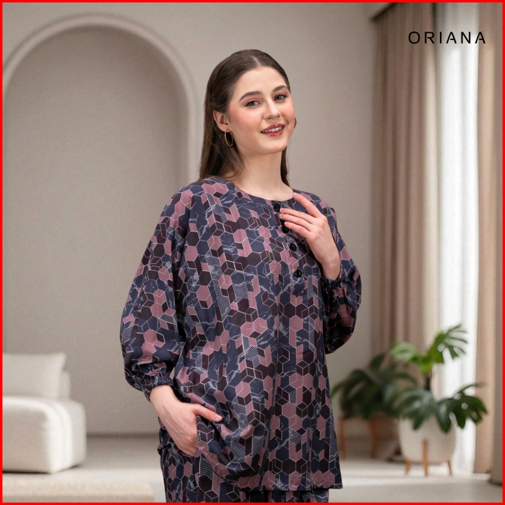 Oriana Sleepwear Piyama Long Sleeve Balon Aliana Series Baju Tidur Jumbo Pajamas One Set