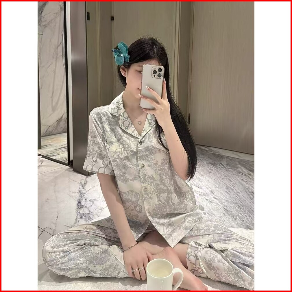 Piyama Wanita Bahan Sutra Es Gaya Korea Lembut Nyaman Tidur Daster Baju Tidur Wanita Baju Tidur Piyama Tidur Wanita Baju