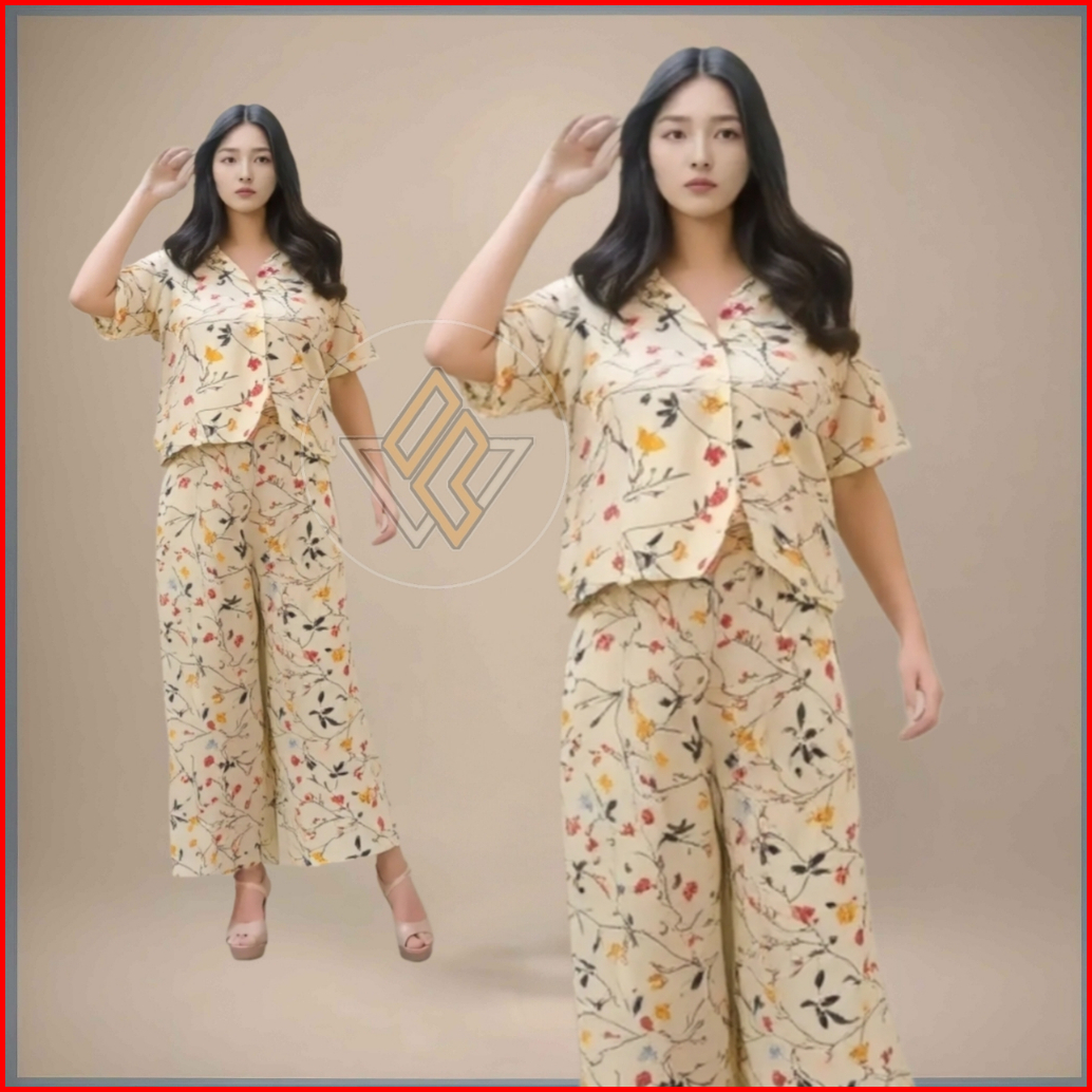 One Set Crop Setelan Celana Kulot Wanita Hightwaist