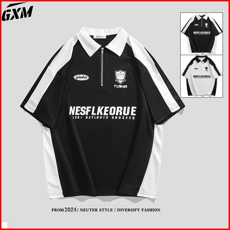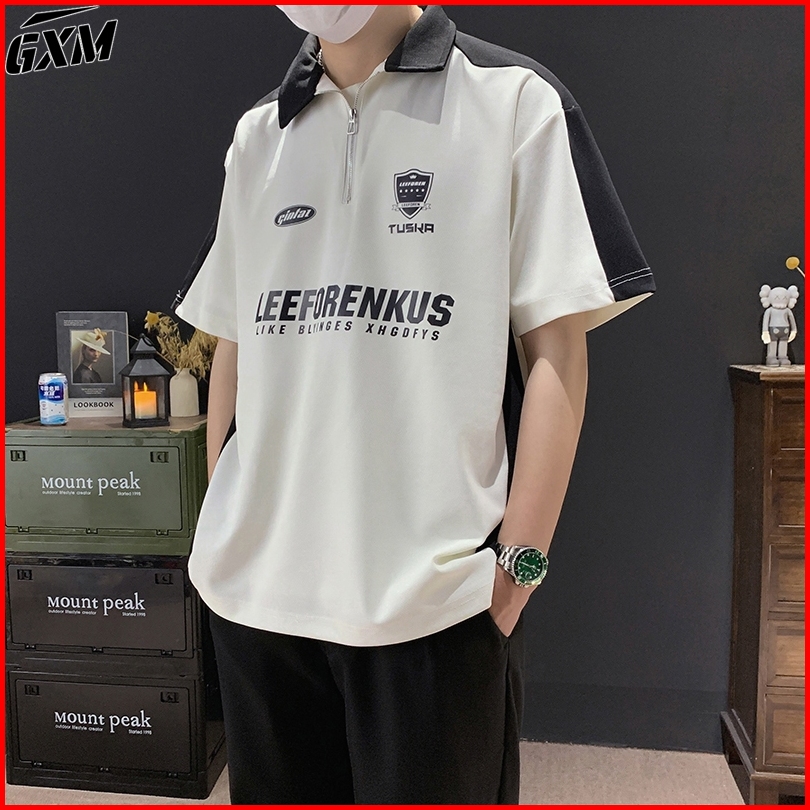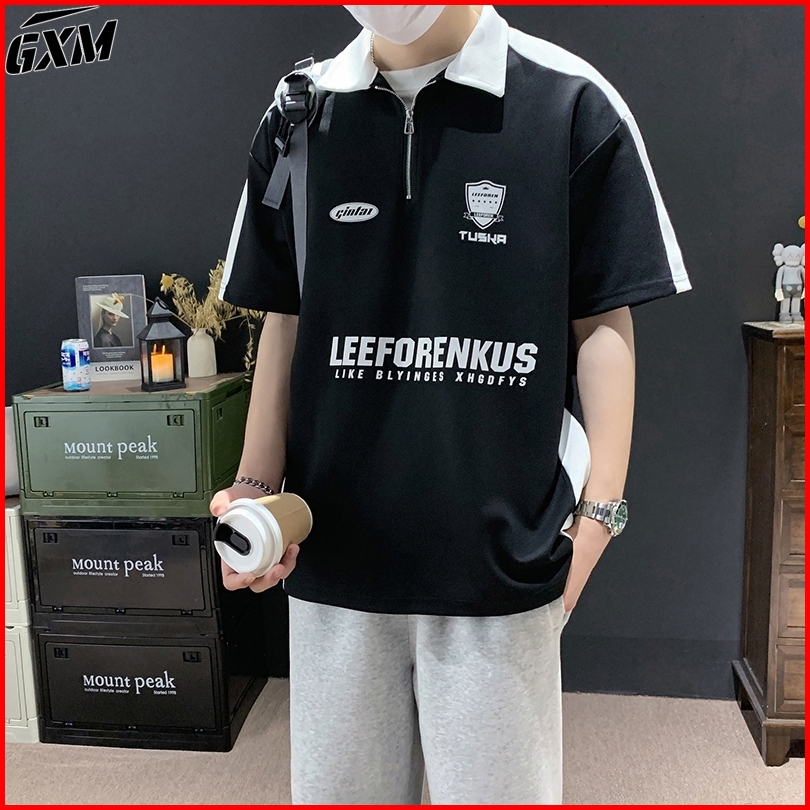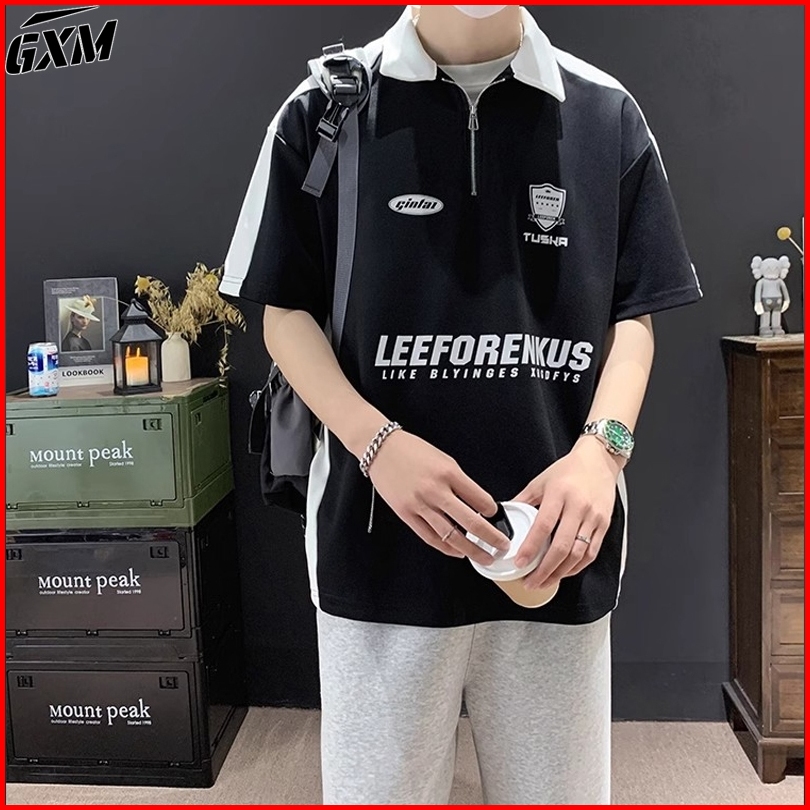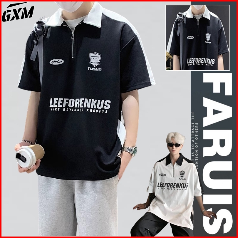 Kaos Kerah Polo Shirt Pria Polos Lengan Pendek Zipper Putih Hitam Korean Style Baju Kaos Loose Kekinian Atasan Casual T