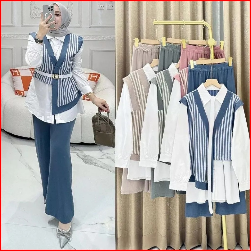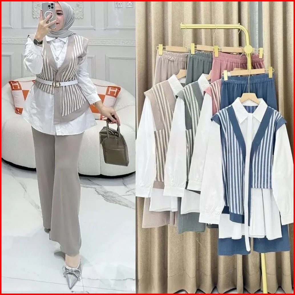 Dena One Set One Set Wanita Atasan Celana Terbaru 2024 Setelan Wanita Bahan Cringkle Mix Terbaru