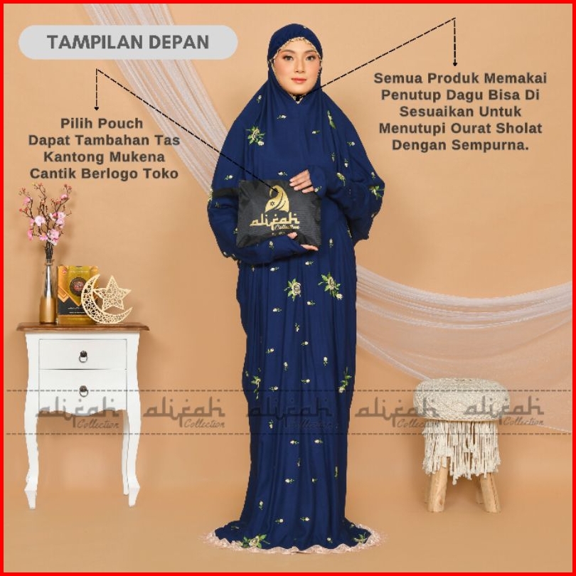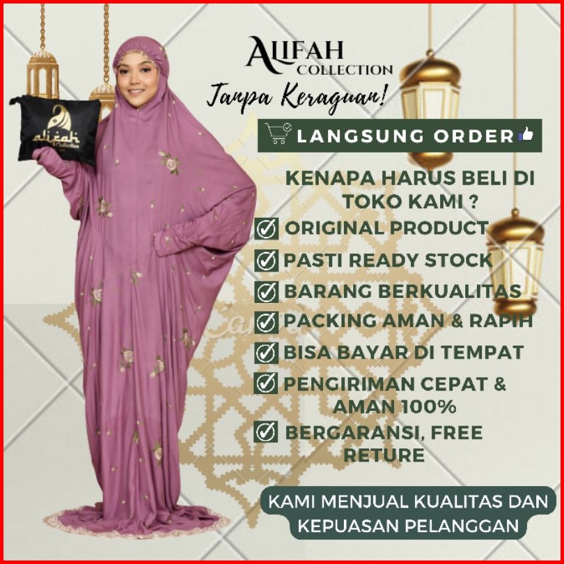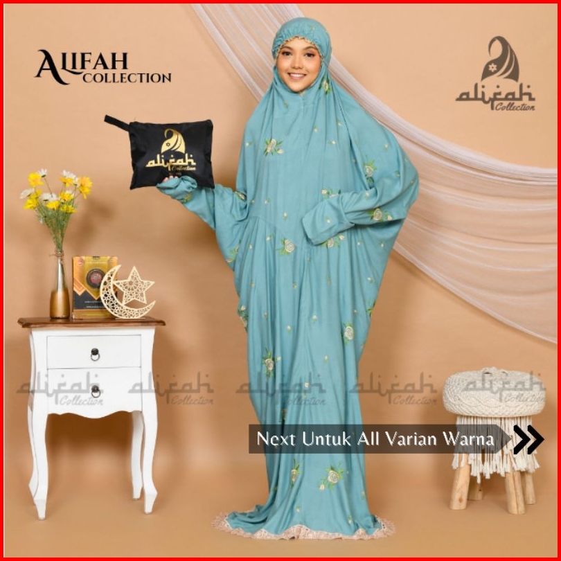 Mukena Terusan Dewasa Katun Rayon Premium Adem Nyaman Dipakai Tas Travel Mukena Mawar Alifah