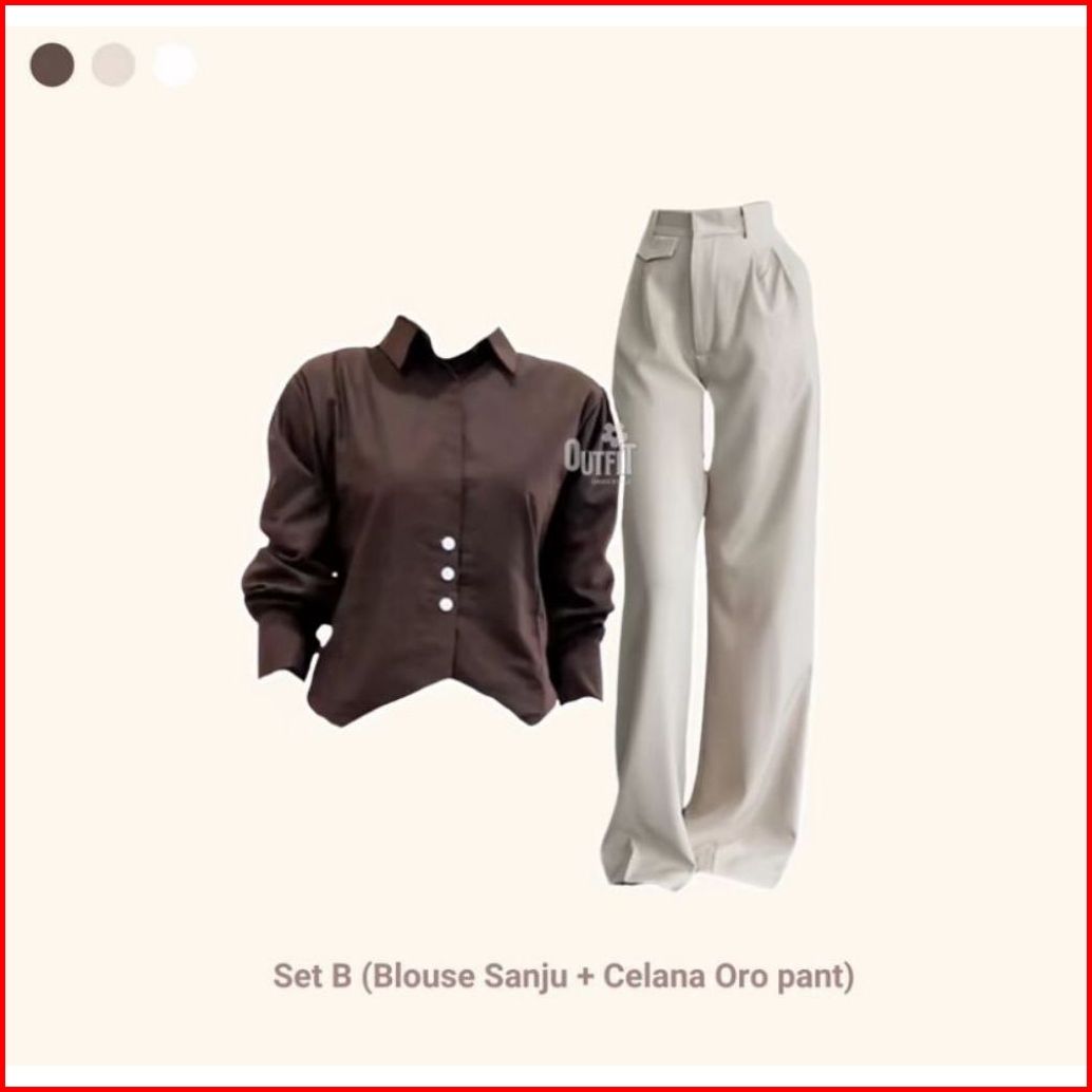 Setelan Wanita One Set Wanita Blouse Sanju Pashmina Oro Pants Haighwaist Setelan Wanita Setelan Wanita Kekinian Ootd Wan