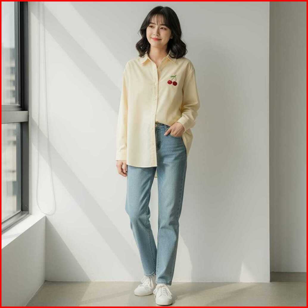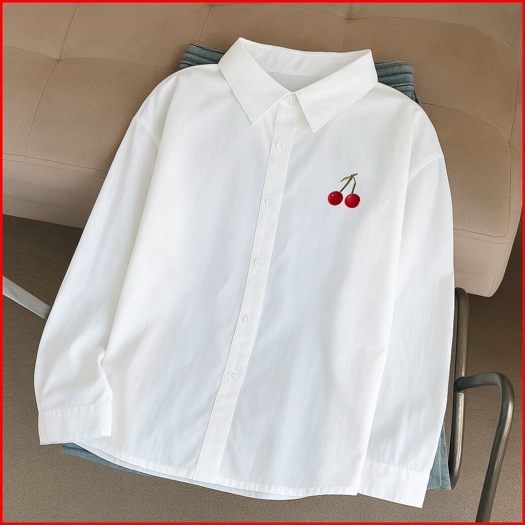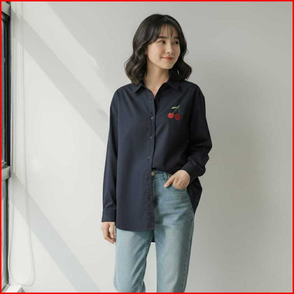 Vallina Outfit - Cherry Ribbon Shirt Kemeja Bordir Linen Premium Wanita Muslim Blouse Atasan Polos