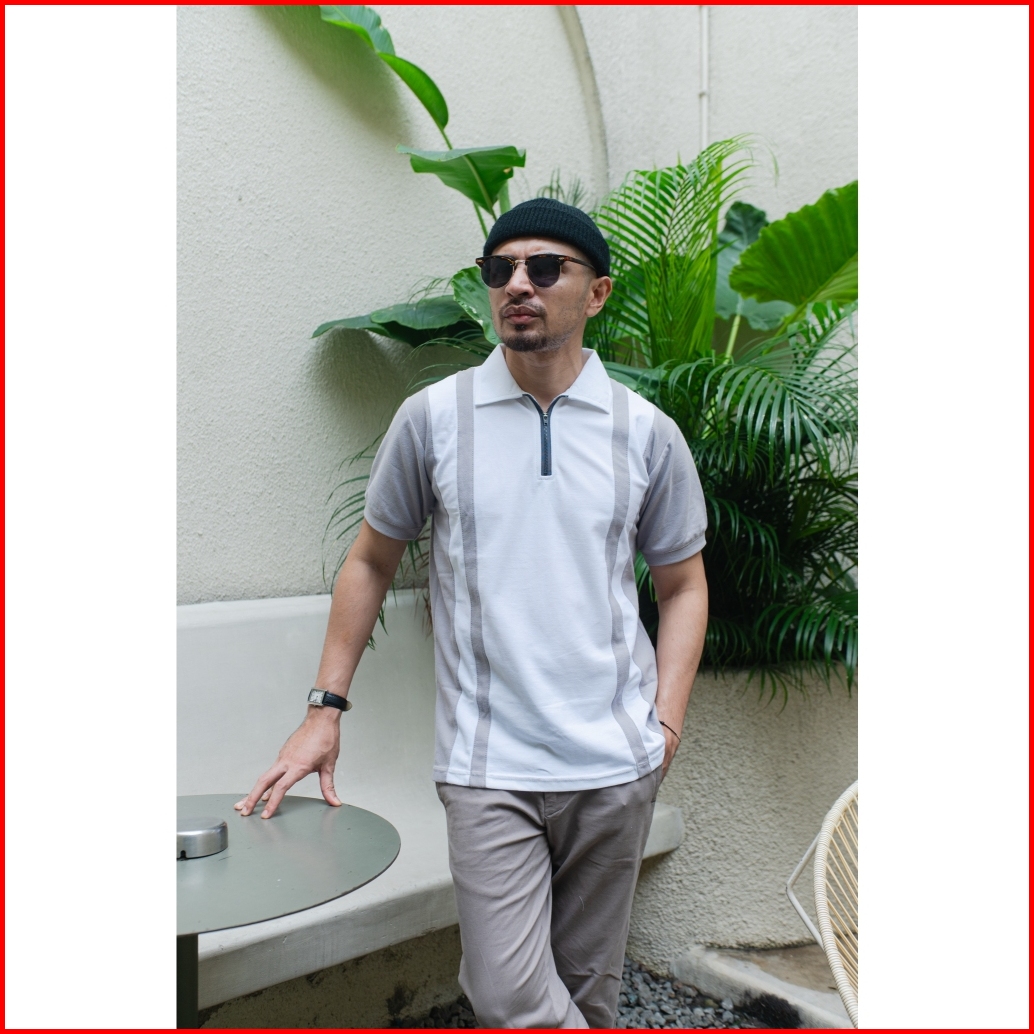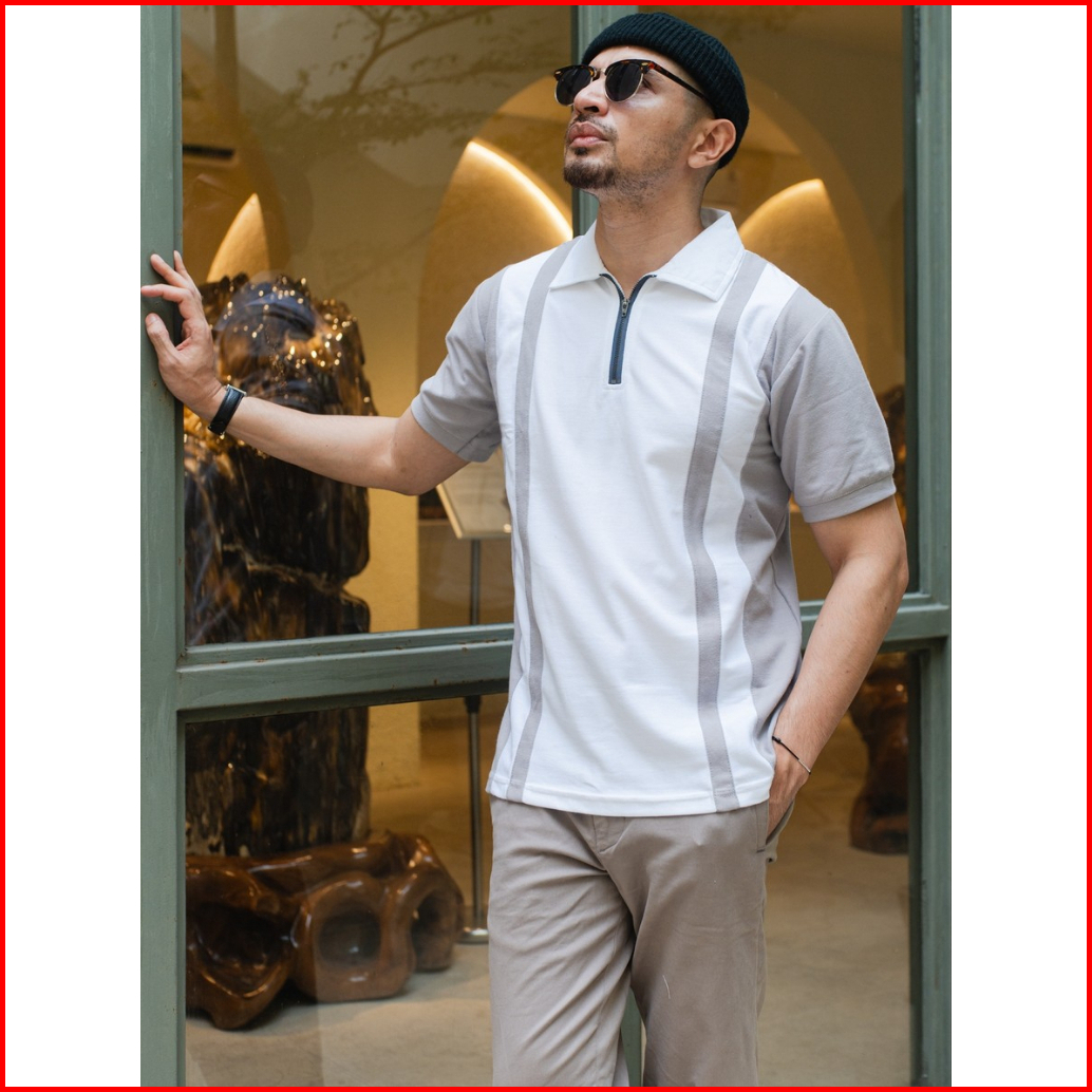 Polo Zipper Enzo - Atasan Pria Musim Panas - Baju Kaos Berkerah Pria