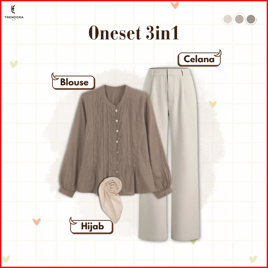One Set Wanita Kekinian Blouse Pololinen Celana Knit Jilbab Segi Empat Casual Outfit Tf58