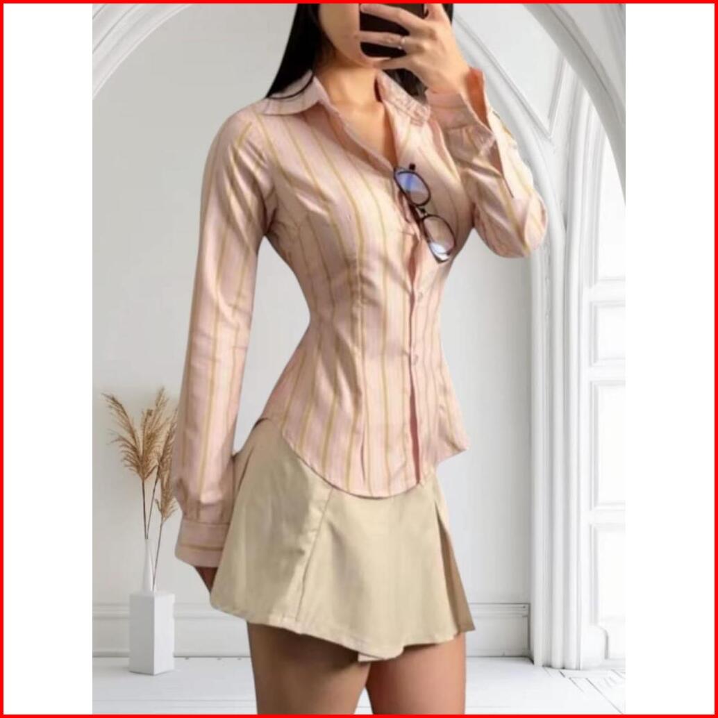 Liza Kemeja Fitted Shrit Atasan Wanita Motif Garis Terbaru