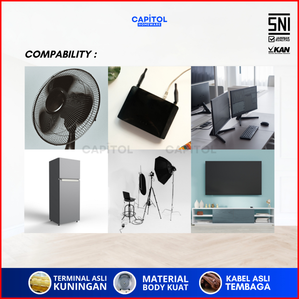 Capitol - Stop Kontak Kabel Box Roll Switch 15 10 Meter 4 Lubang Terminal Asli Kuningan - Tembaga