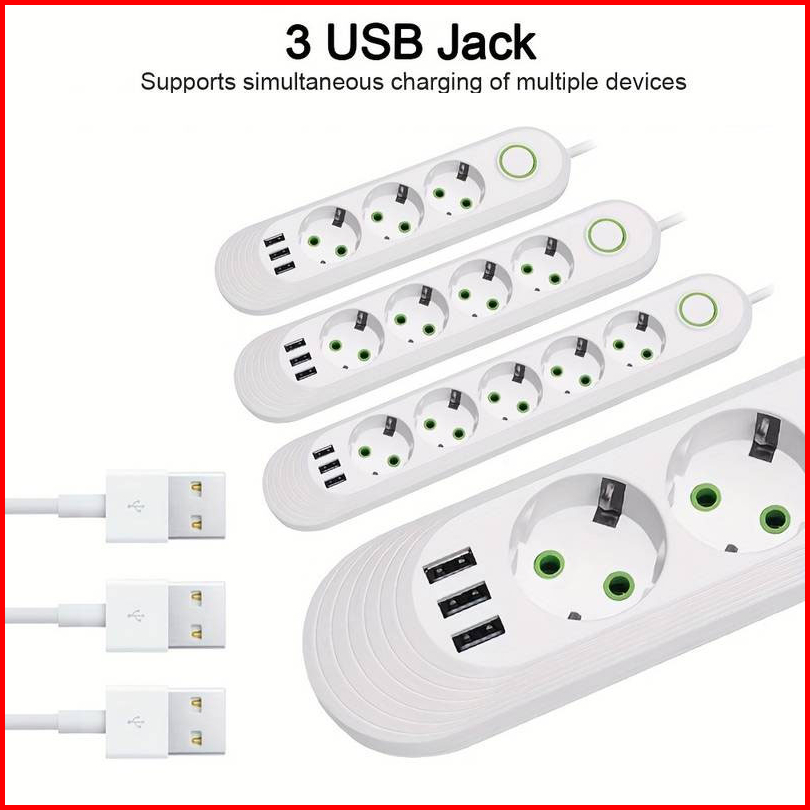 Taffware Terminal Listrik Stop Kontak Usb Port Eu Plug 10a 110-250v 2500w 3 4 Lubang Colokan - Ql-1071u Ql-1072u