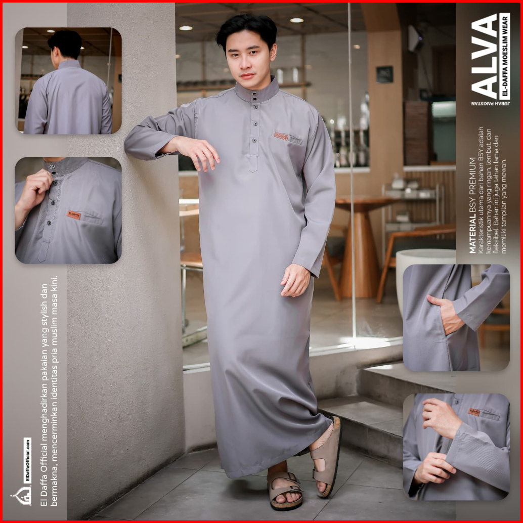 Jubah Gamis Pria Alva Original El Daffa - Baju Muslim Pria Terbaru
