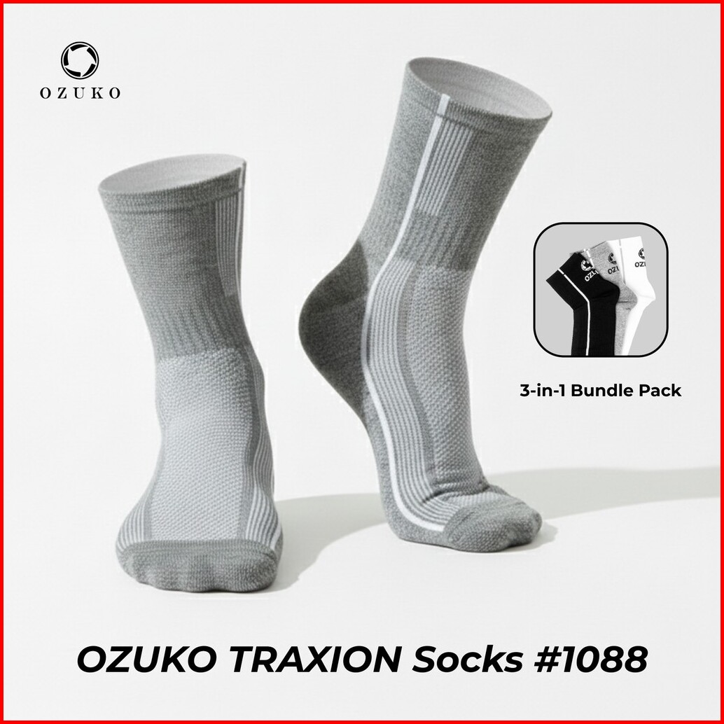 Ozuko Traxion Socks 1088 Kaos Kaki Pria Katun Bambu Anti Bau - Paket Isi 3