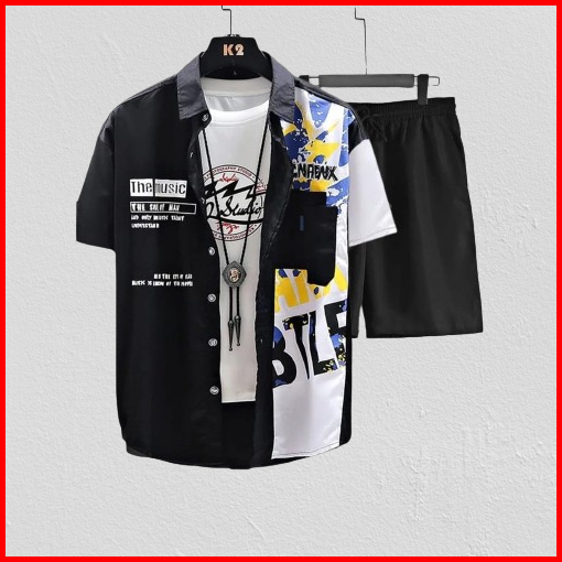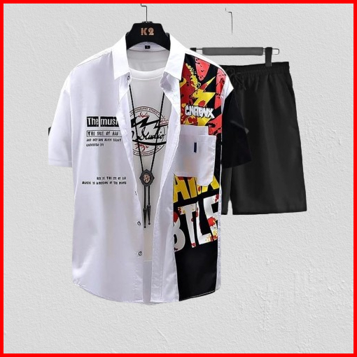 Setelan Kemeja Pendek Music Dan Celana Pendek Pria