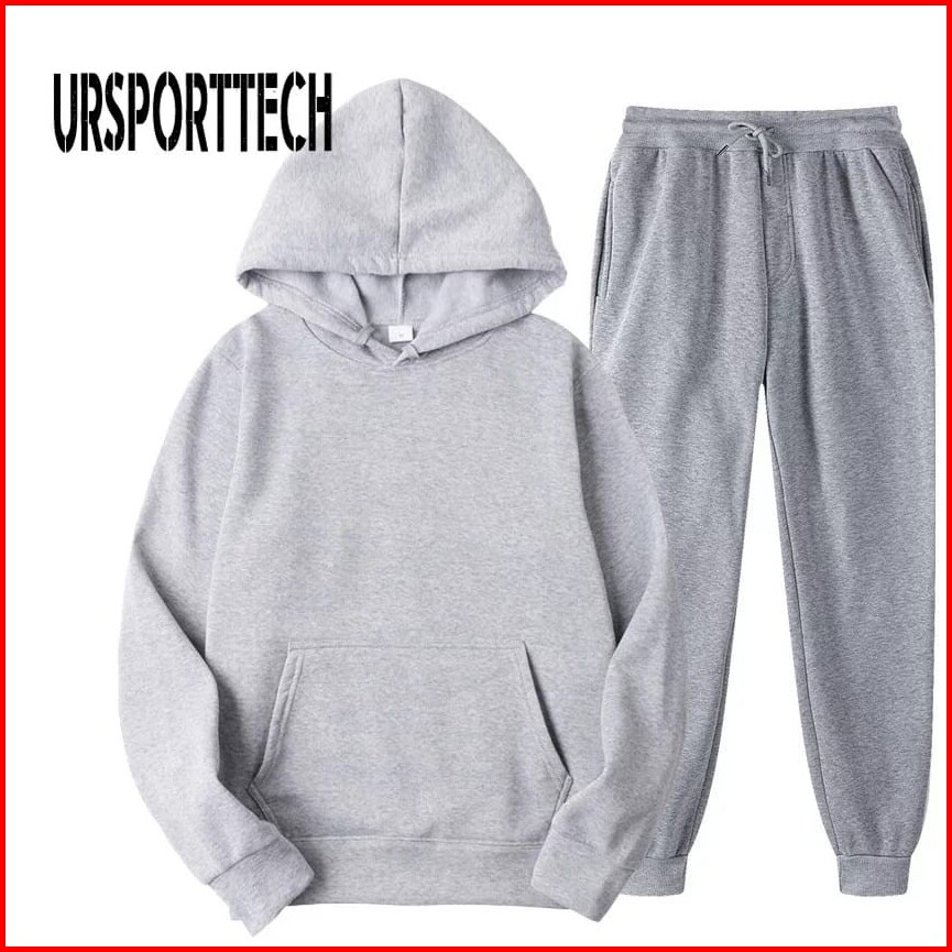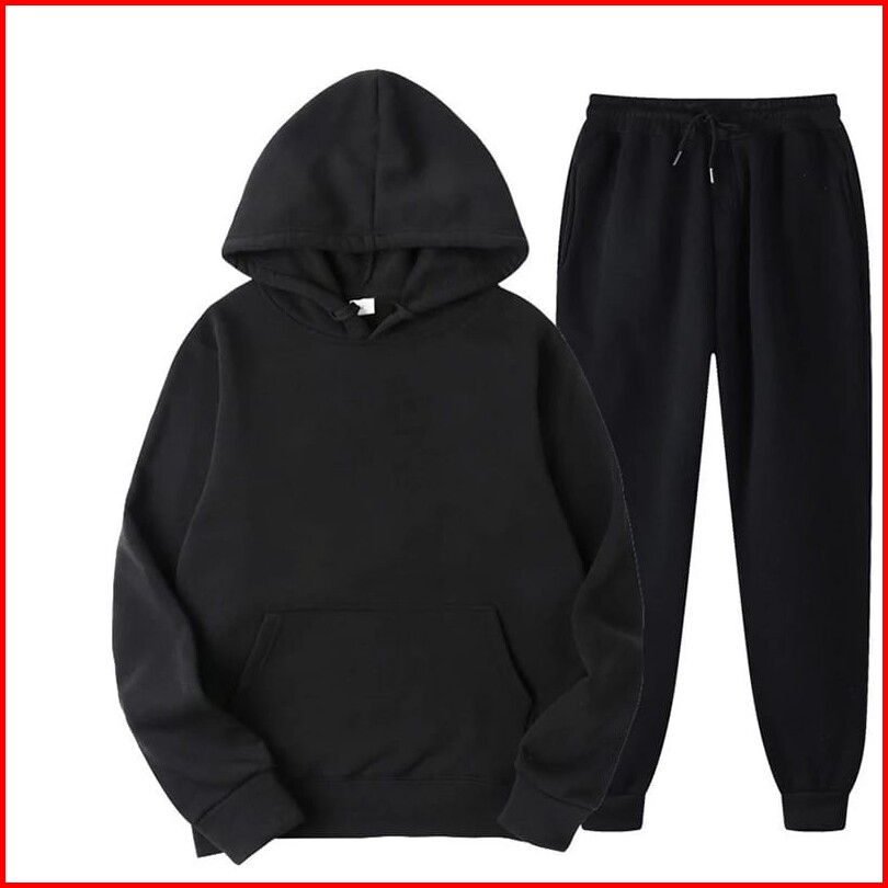 Setelan Sport Polos Bahan Fleece Tebal - Set Celana Panjang Sweater Hoodie Sporty