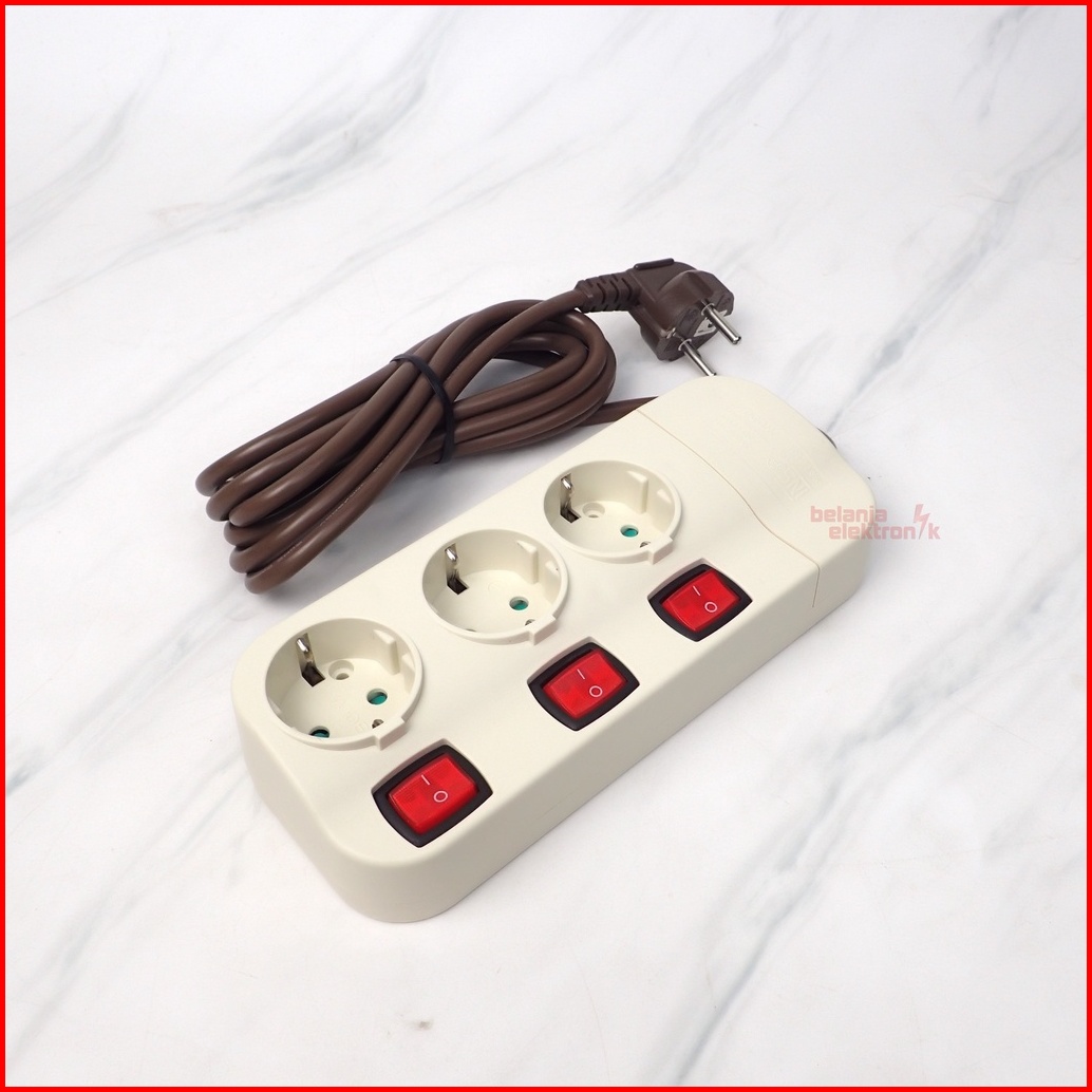 Stop Kontak 3 Lubang Kabel 3m Terminal Kontak Kuningan Saklar Uticon St-8382 Sw