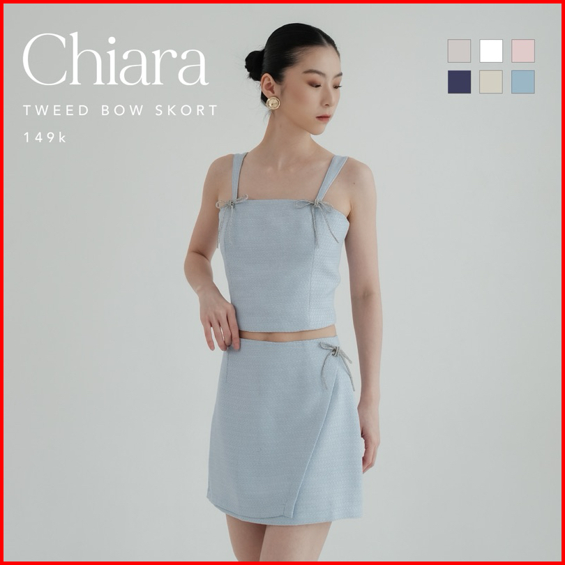 Chiara Tweed Bow Skort -- Ocha Wear Celana Rok Pendek Wanita Shorts Tweed Murah Premium