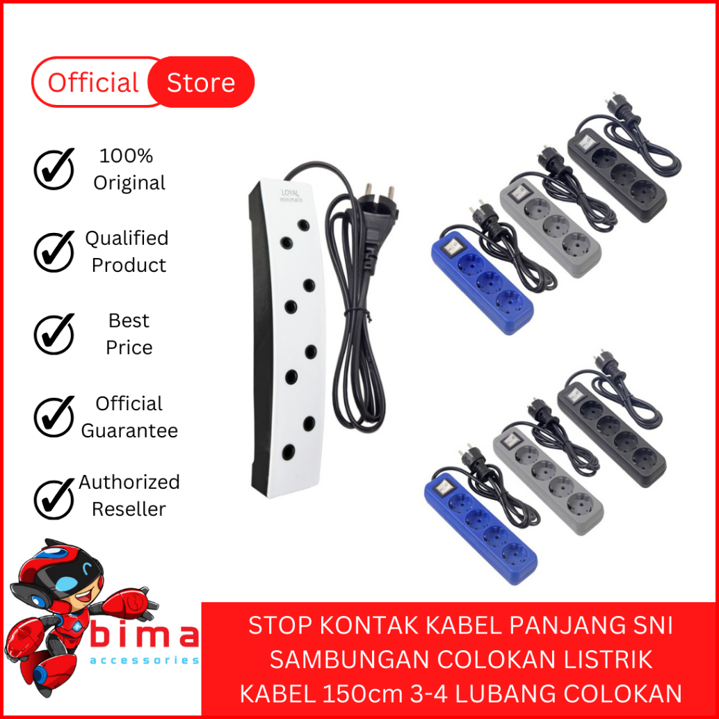 Stop Kontak Kabel Panjang Sni Terminal Sambungan Colokan Listrik Kabel 150cm 3-4 Lubang Colokan