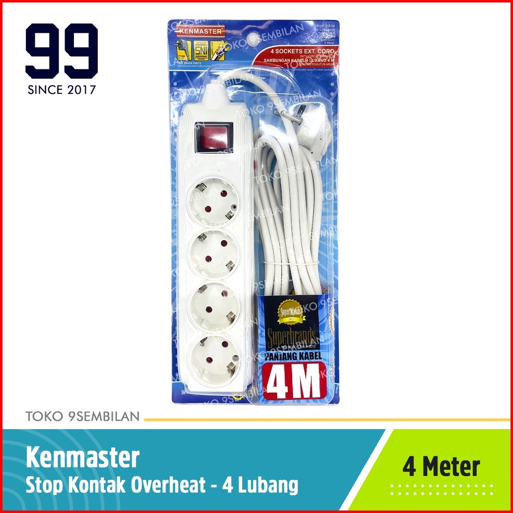 Kenmaster Stop Kontak 4 Lubang 4 Meter On Off Overheat F1-4-4