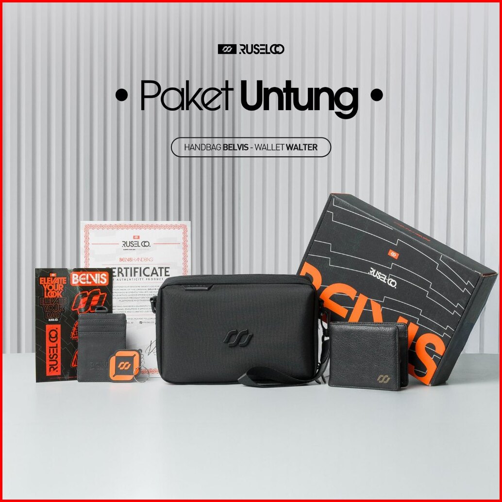 Ruselco Paket Untung Belvis Handbag Walter Wallet Bundle Hemat Tas Clutch Dompet Pria Bundling