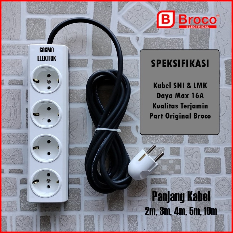 Broco Terminal Stop Kontak Kabel 4 Lubang Sni 1m 2m 3m 4m 5m 6m 7m 8m 9m 10m 12m 15m Dan 20m
