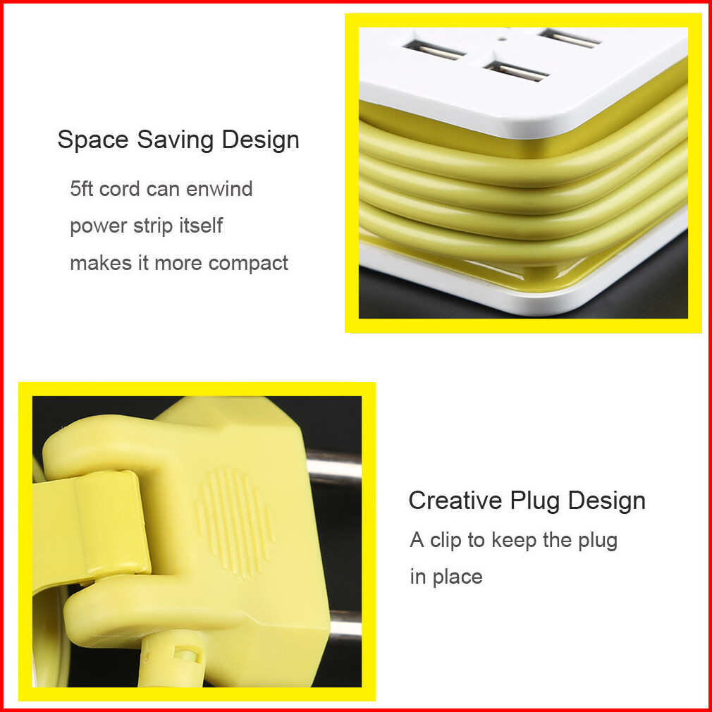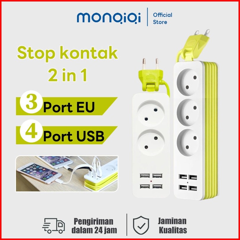 Monqiqi Portable Stop Kontak Travel - 4 Usb Port - Kabel 1 5 Meter