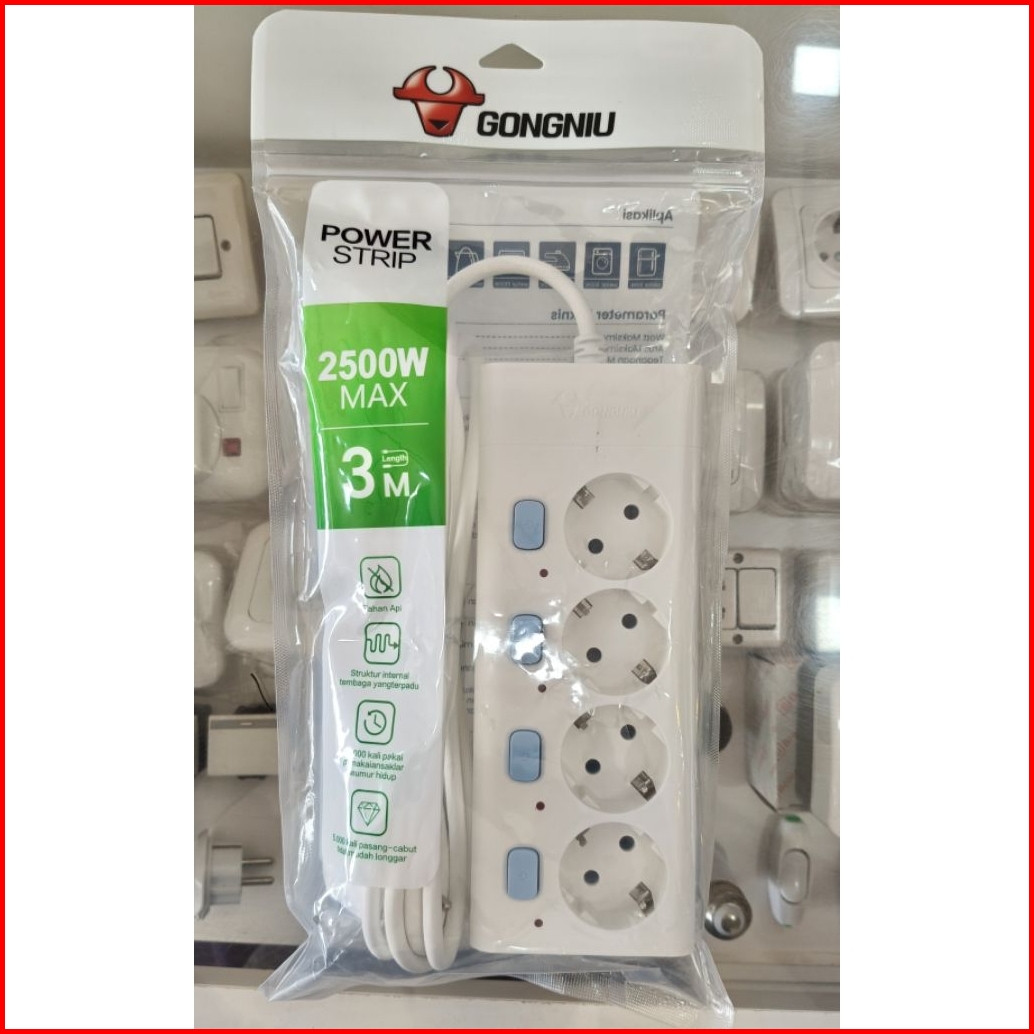 Gongniu Stop Kontak Kabel Terminal Colokan Switch 1 5 Meter 3 Meter 5 Meter 4 Lubang 5 Lubang Sni