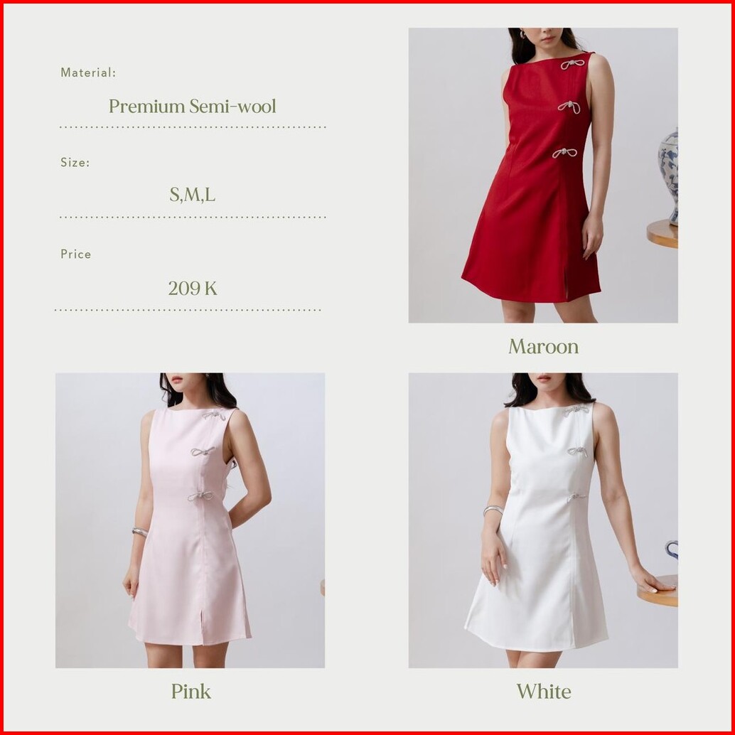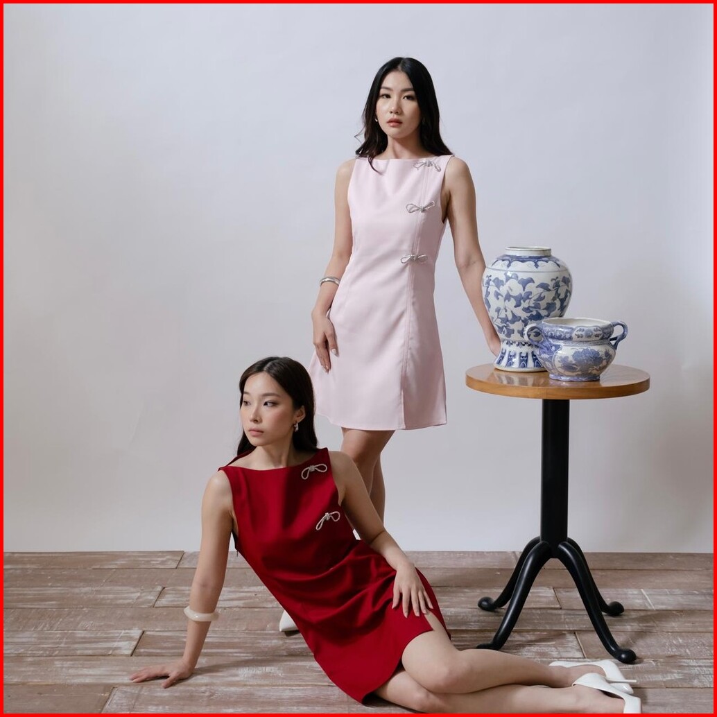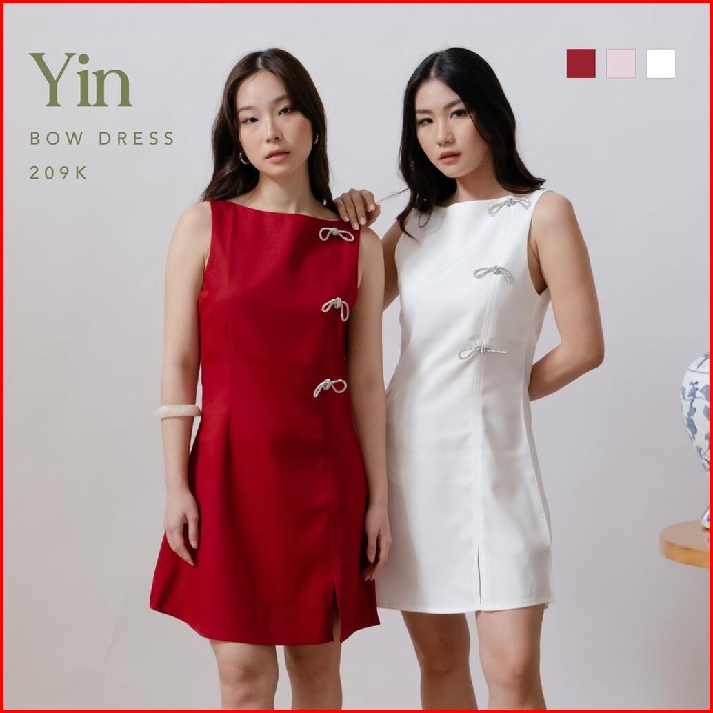 Yin Bow Dress -- Ocha Wear Elegant Dress Wanita Semi Formal Mini Dress Cny Collection
