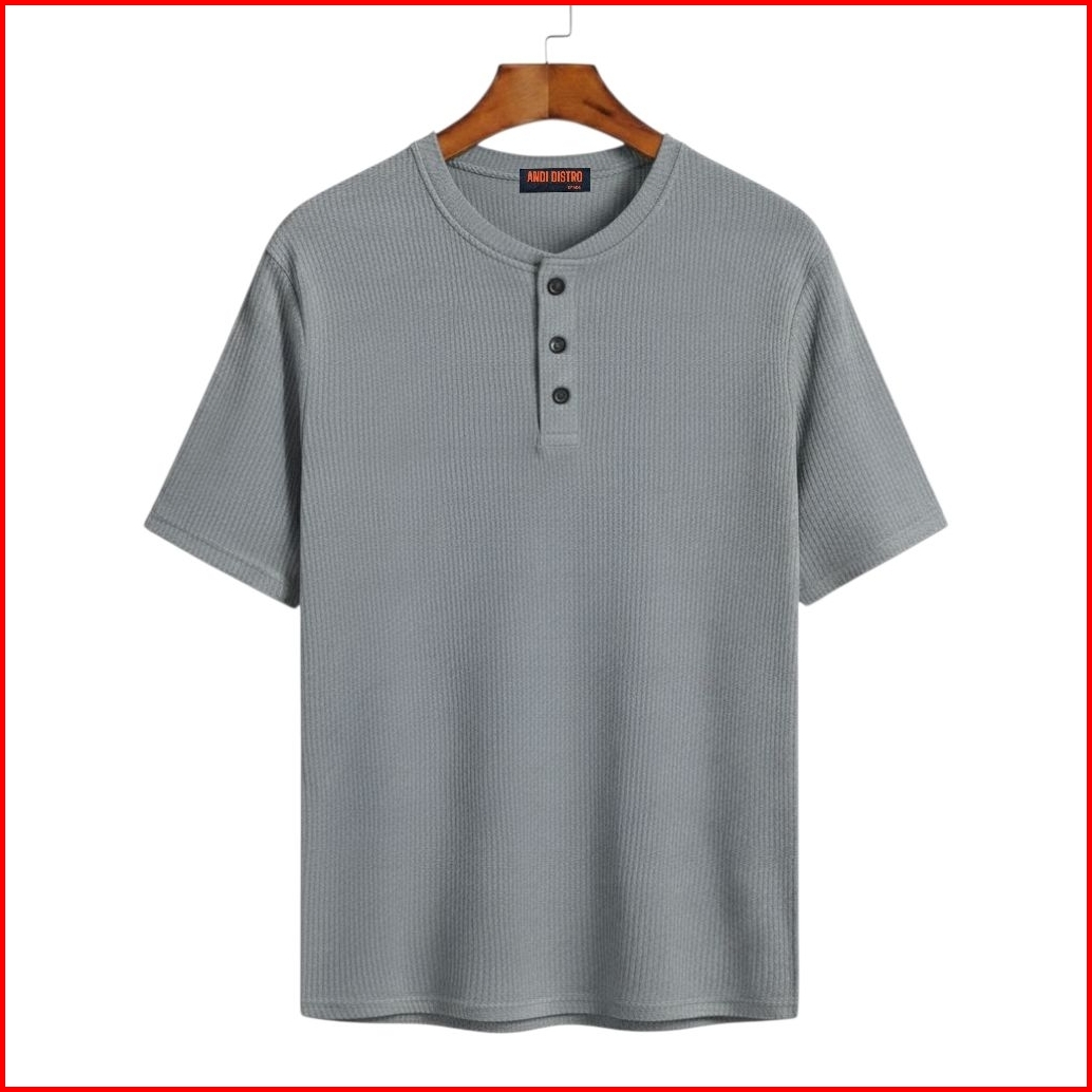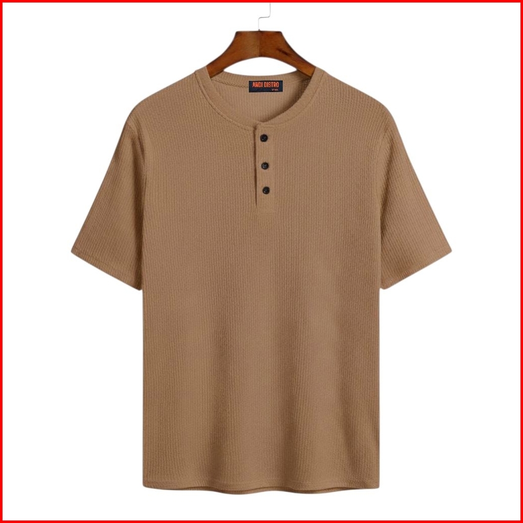 Kaos Kancing Distro Knitwaer Waffle Pendek Kekinian Kaos Henley Distro Pedek Krah Sanghay Murah