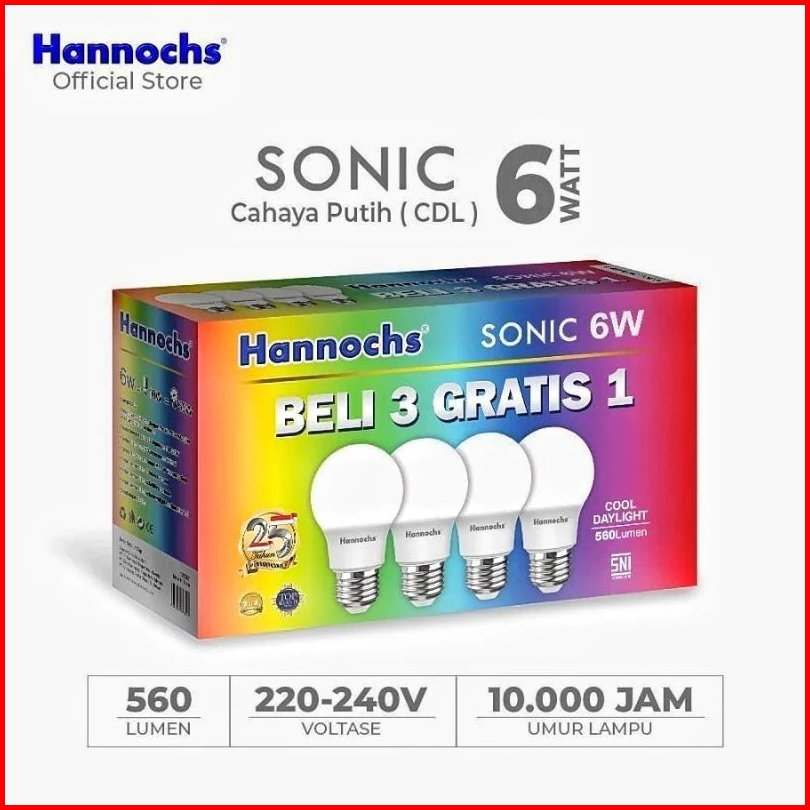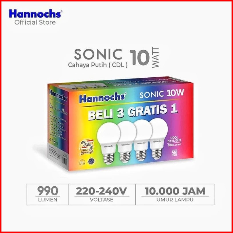 Lampu Led Hannochs Sonic 6w 10w 13w Paket 3 Gratis 1 Bohlam Led