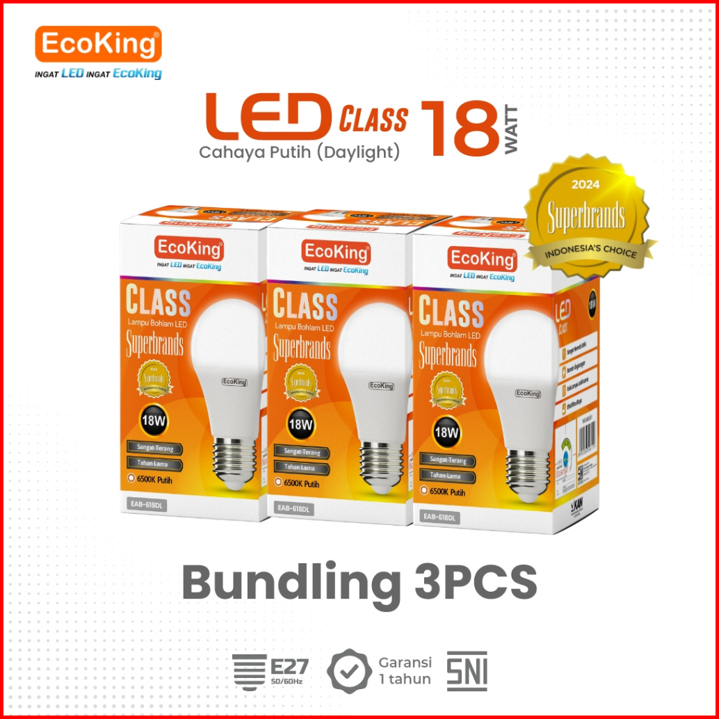 Ecoking Lampu Bohlam Rumah Light Bulb Led Class 18w 3 Pcs Cahaya Putih Eab618dl