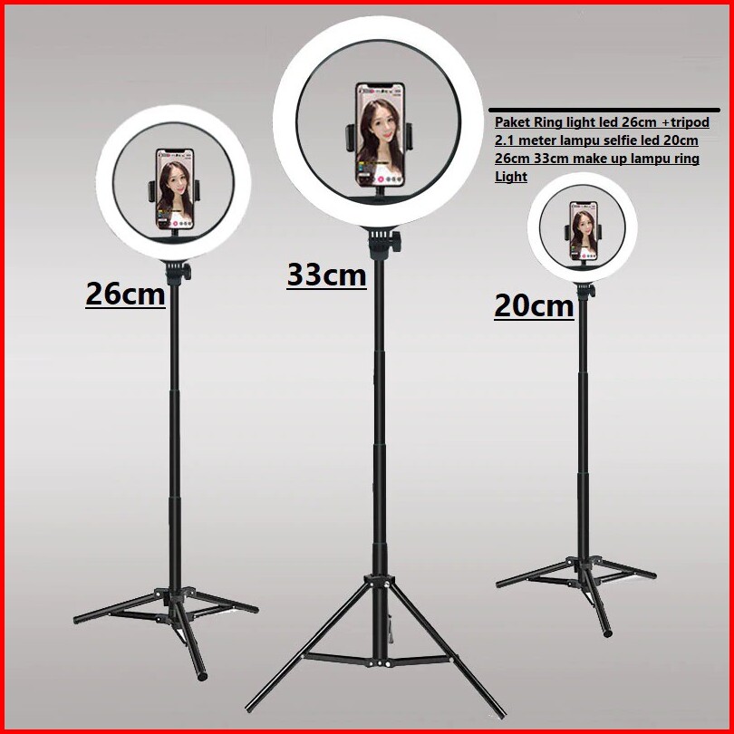 Paket Ring Light Led 26cm Tripod 2.1 Meter Lampu Selfie Led 20cm 26cm 33cm Make Up Lampu Ring Light