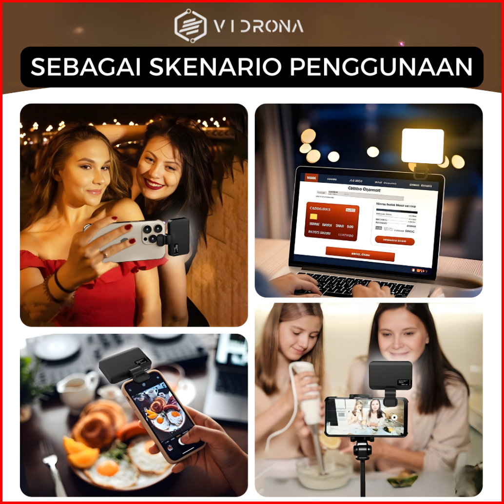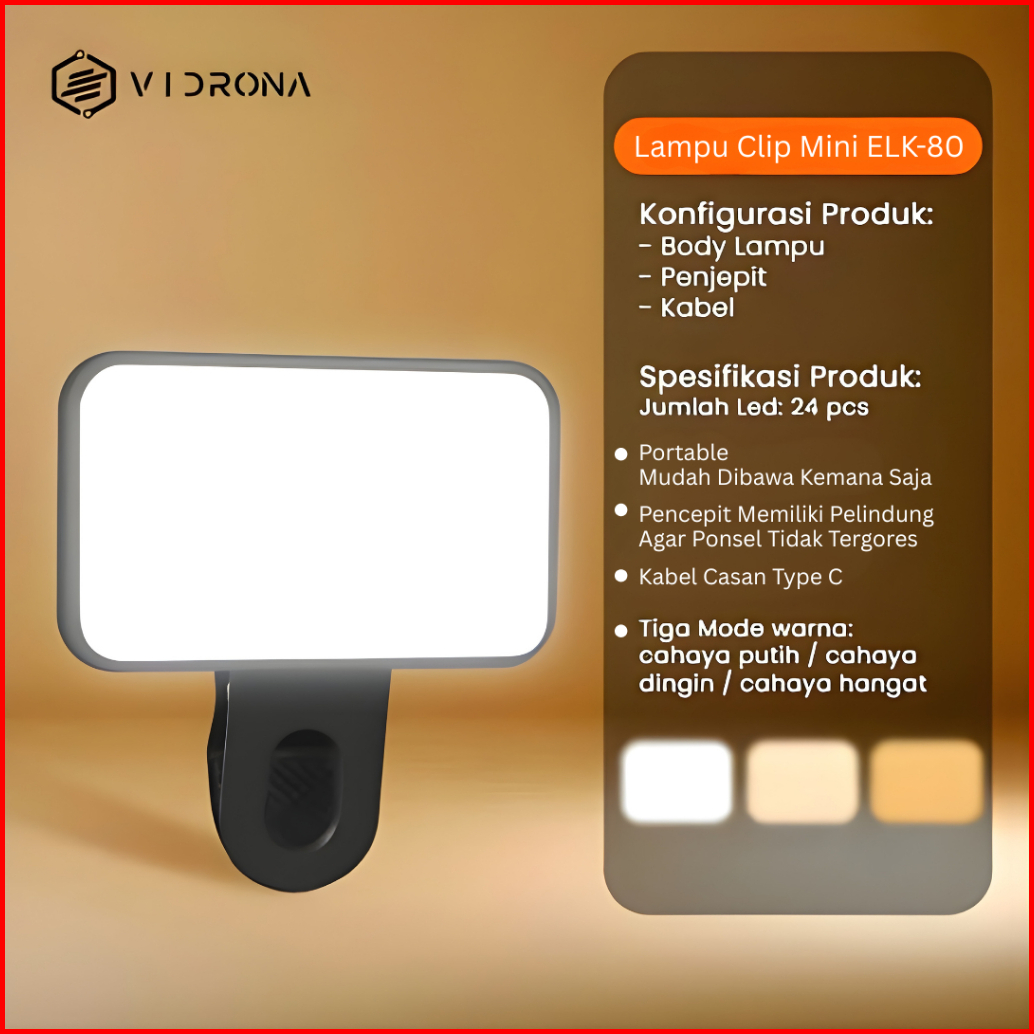 Vidrona Elk-80 Ring Light Mini Lampu Selfie Jepit Led Portable Untuk Hp Streaming Konten