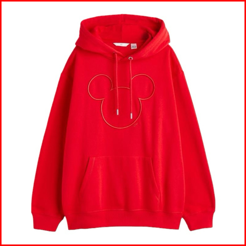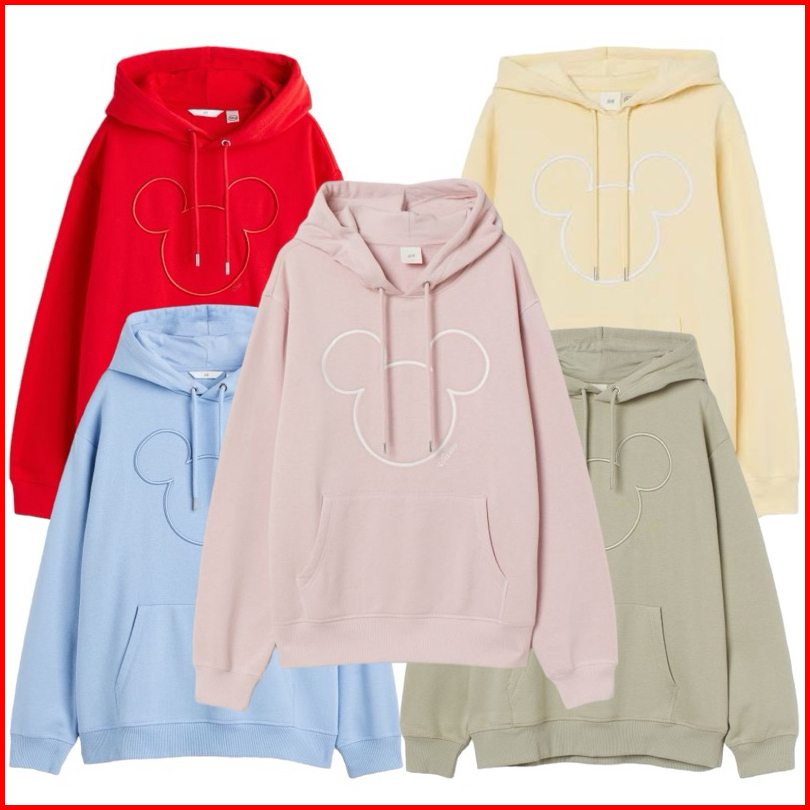 Hoodie Wanita Hm Mickey Mouse Bordir Flecee Katun