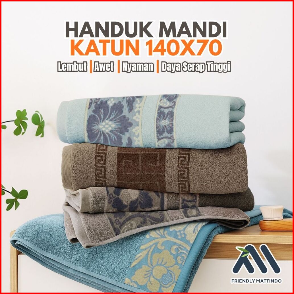 Handuk Mandi Dewasa Ukuran Besar 70x140cm 100 Katun Daya Serap Tinggi Motif Bordir Mj-1a B C D