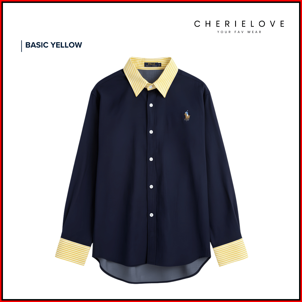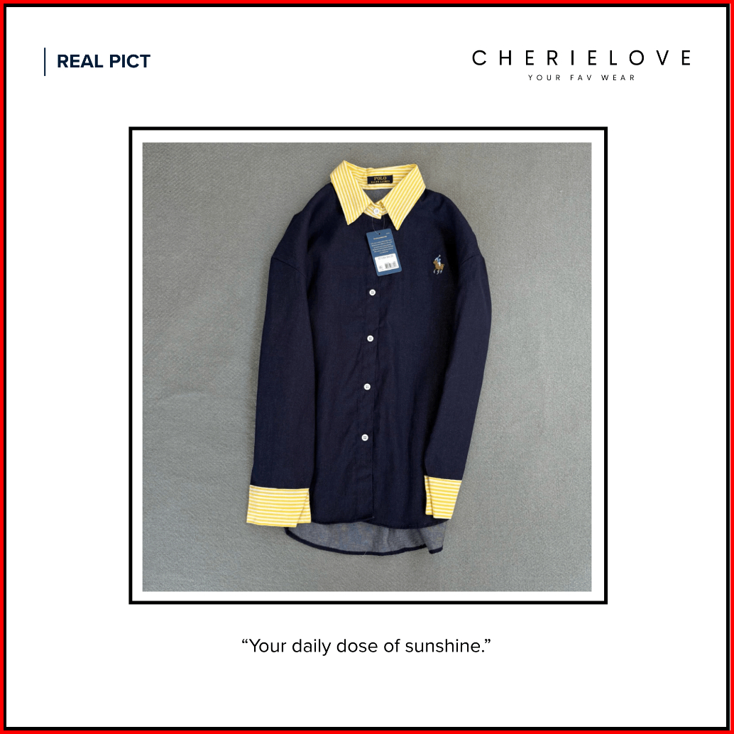 Olop Denim Kemeja Basic Mix Stripe- Atasan Wanita Premium Tangan Panjang