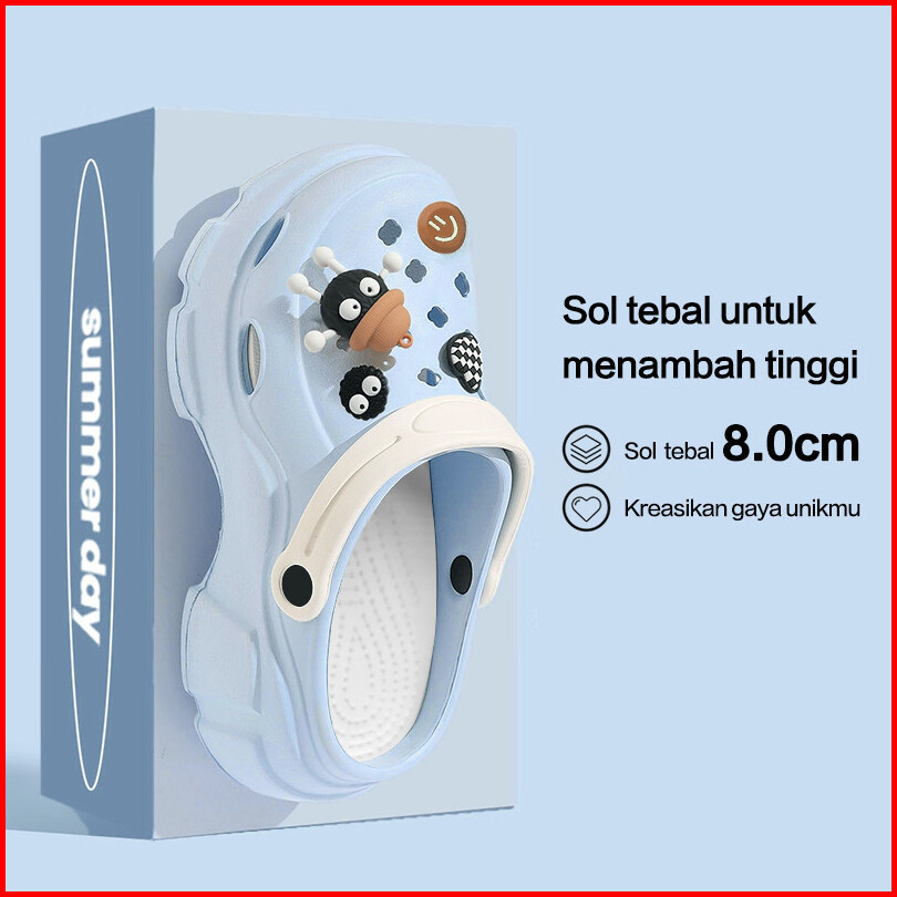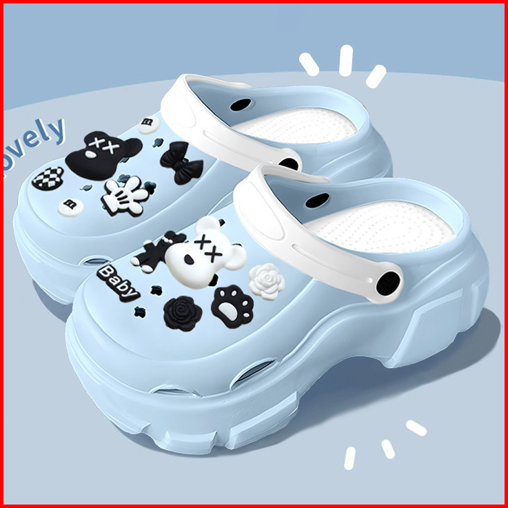 Sandal Wanita 2025 Model Baru Warna Modis Dengan Tali Jelly Dan Aksesoris Hiasan Biru Es
