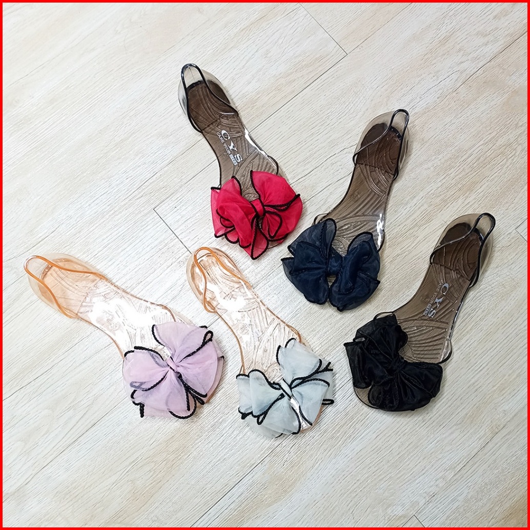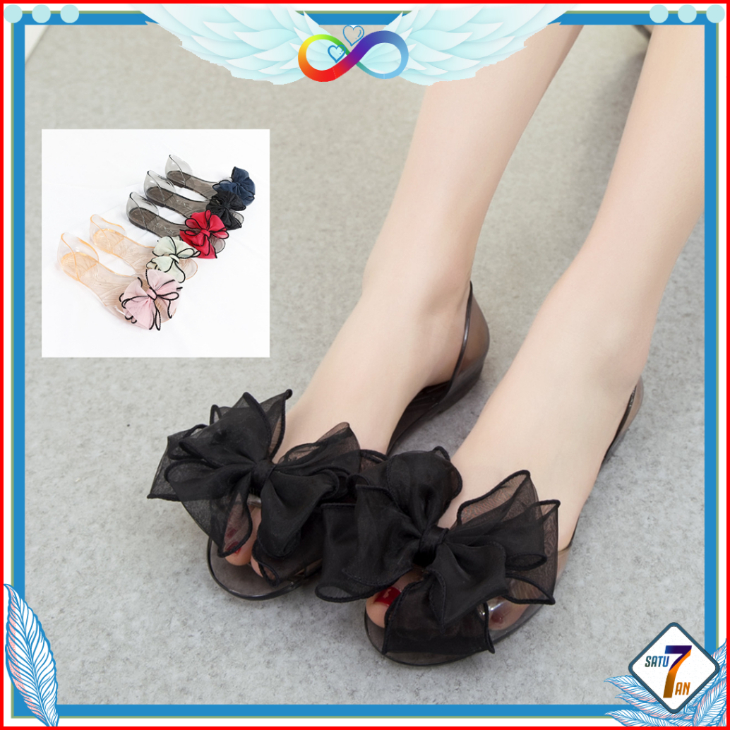 Sepatu Flat Shoes Transparan Sandal Sepatu Jelly Pita Wanita Fashion Korean Ribbon Transparent Slipper Satu7an Spt-89