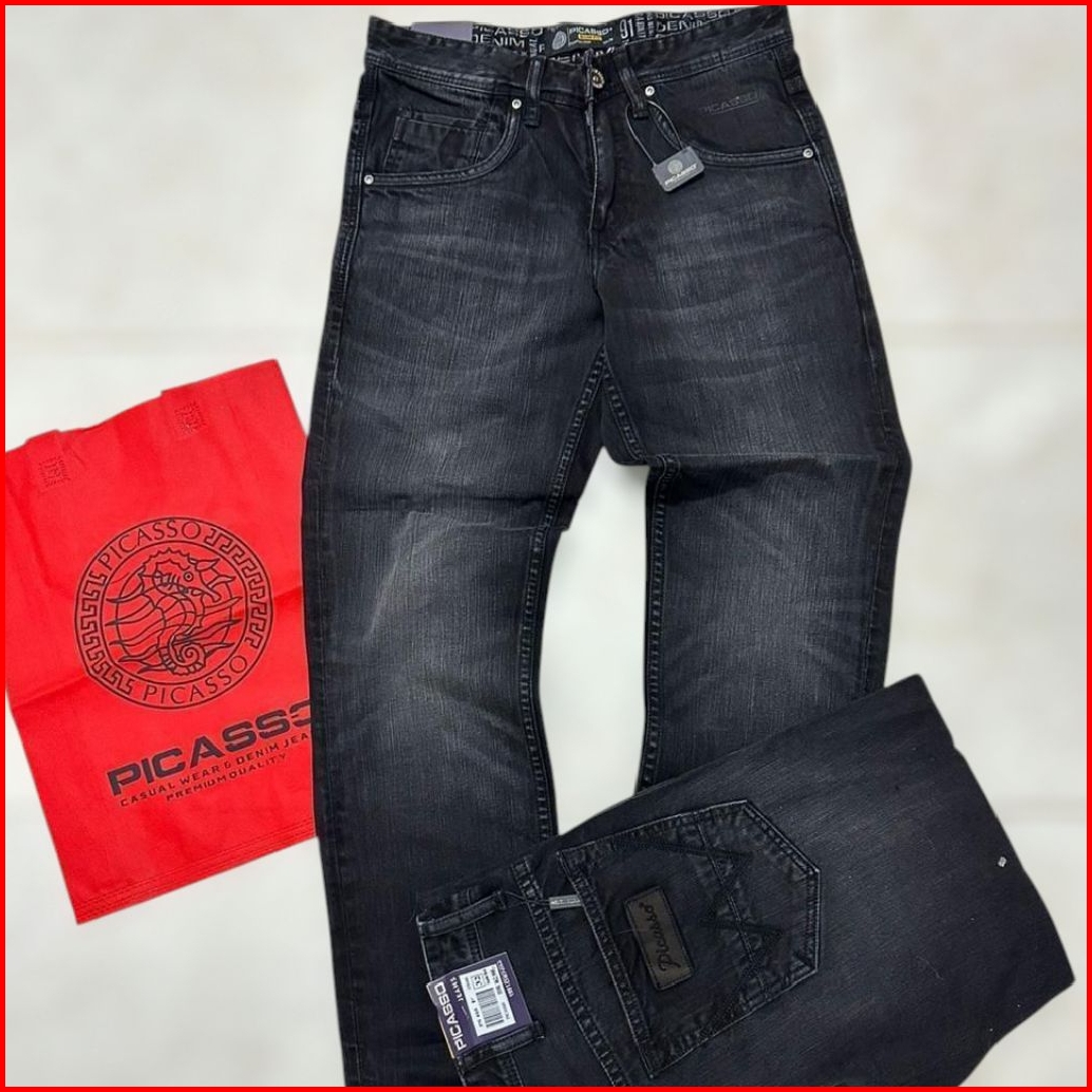 Celana Jeans Picasso Seri W Panjang Pria Original Logo Kulit