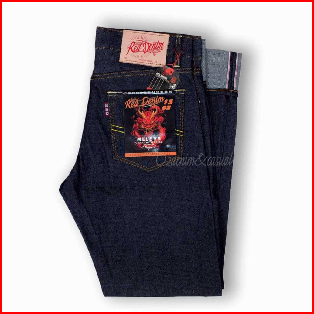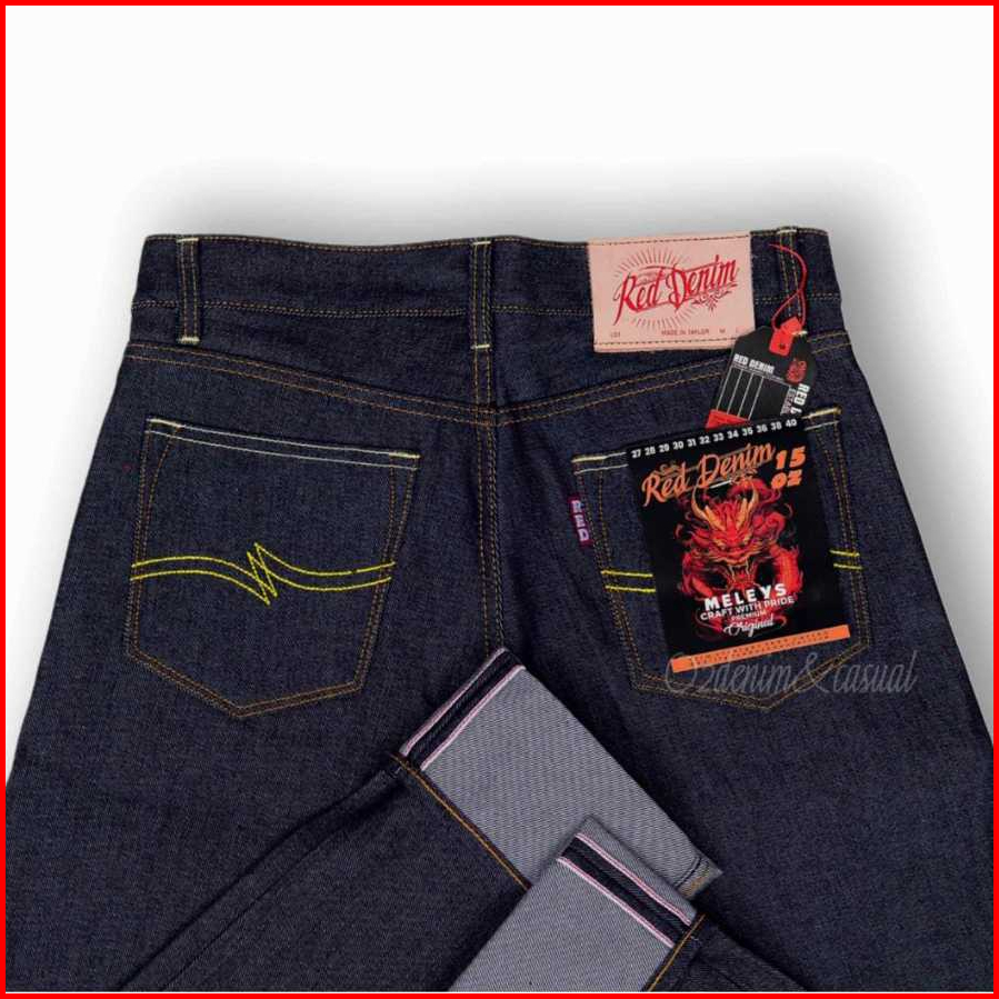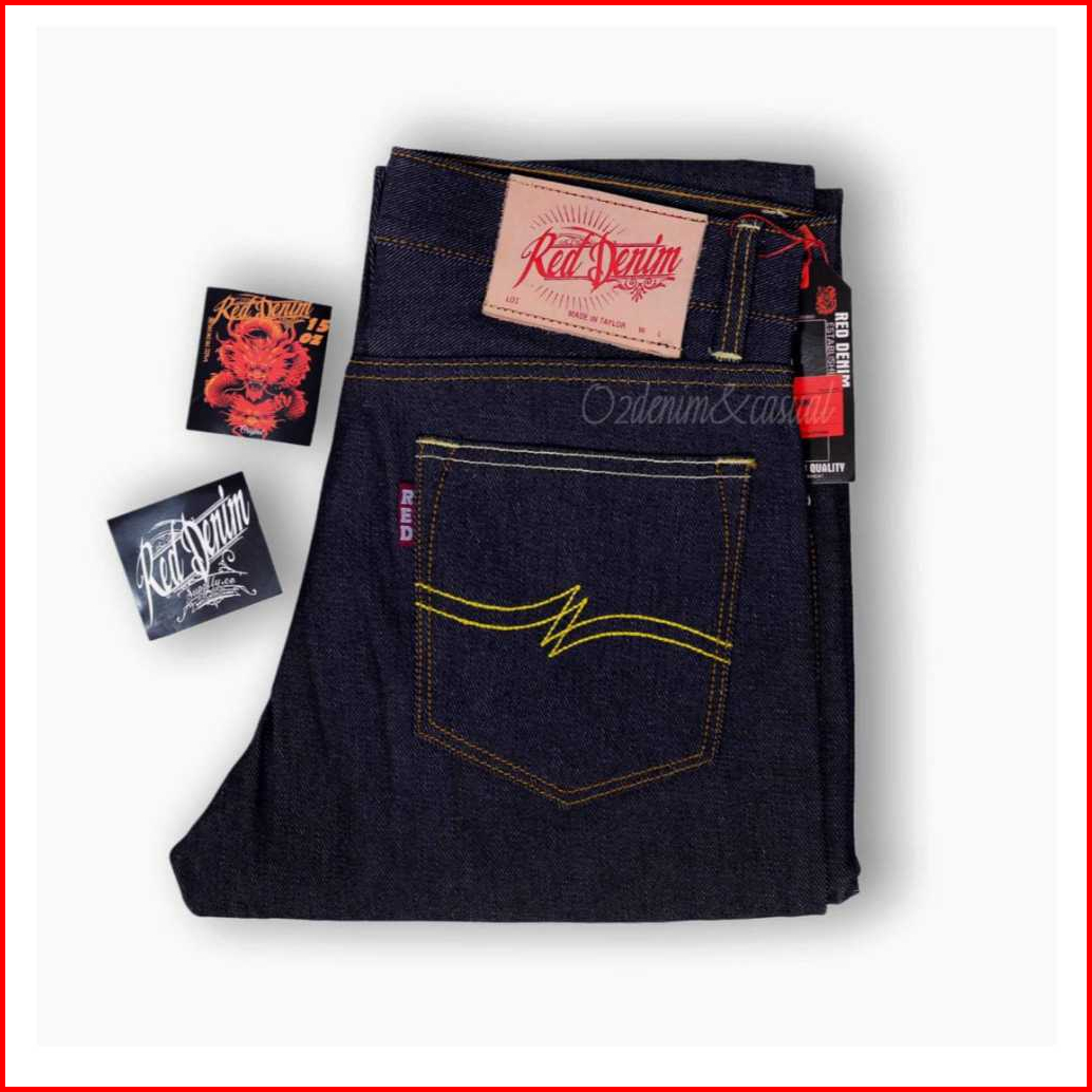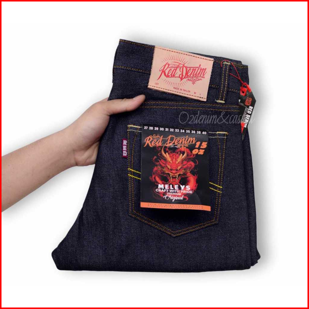 Red Denim 15oz - Celana Raw Denim Selvedge Accent Sanforized Kaku Extra Deep Indigo