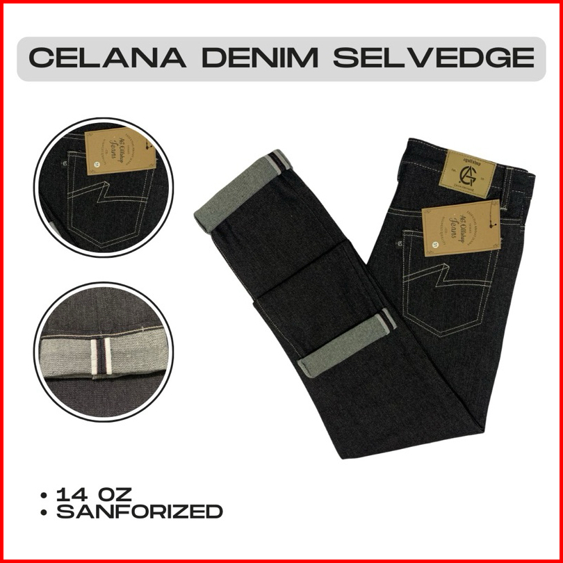 Celana Denim Selvedge 15 Oz Kaku Accent Black Indigo Art Ramon
