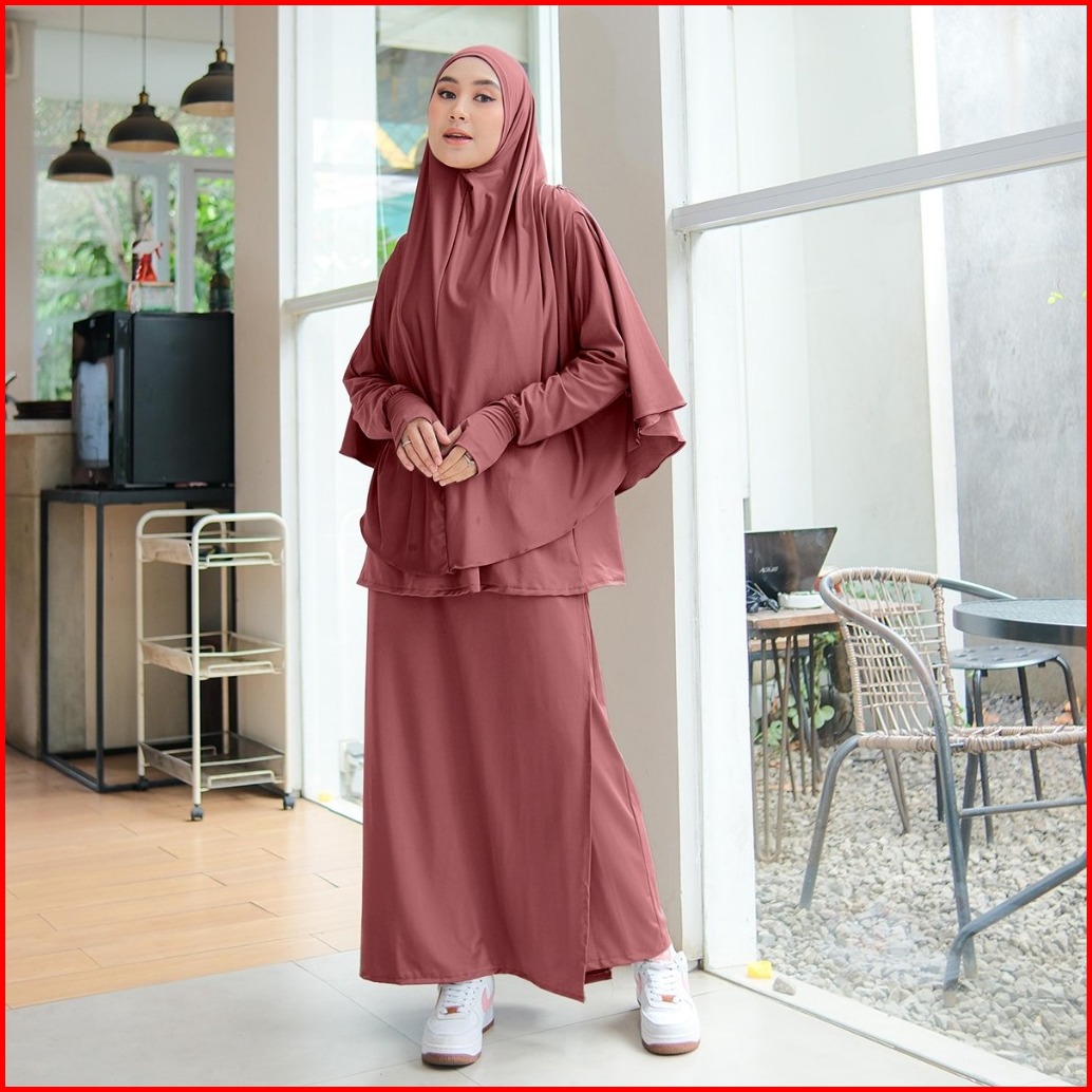 Busana Baju Muslim Dinay Sporty Muslimah Set 3 In 1 Atasan Celana Kerudung Outer