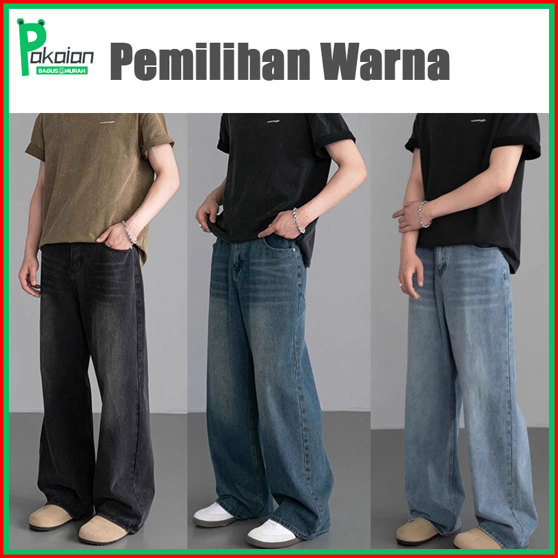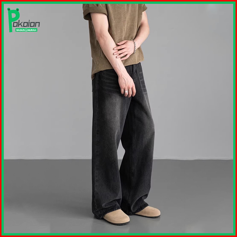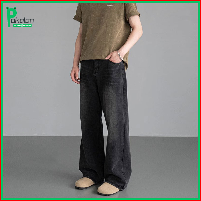 Celana Jeans Pria Celana Panjang Pria Baggy Jeans Pria Celana Kulot Pria Celana Korean Style Pria Celana Gombrong Pria C