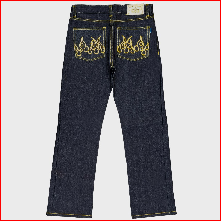 Raw Denim Selvedge Shellstich 16 Oz Non Strech Black Indigo Flame Art
