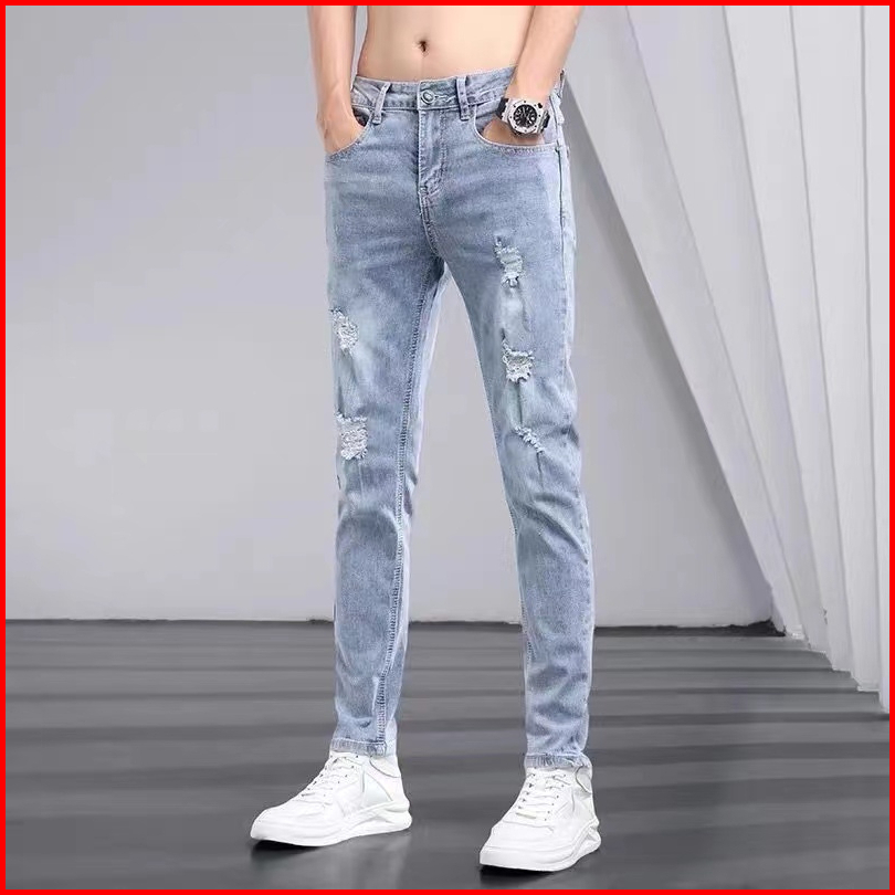 Ootd Korean Style Celana Jeans Slim Fit Pria Celana Ripped Jeans Pria Celana Jeans Robek Pria Celana Panjang Pria Dewasa