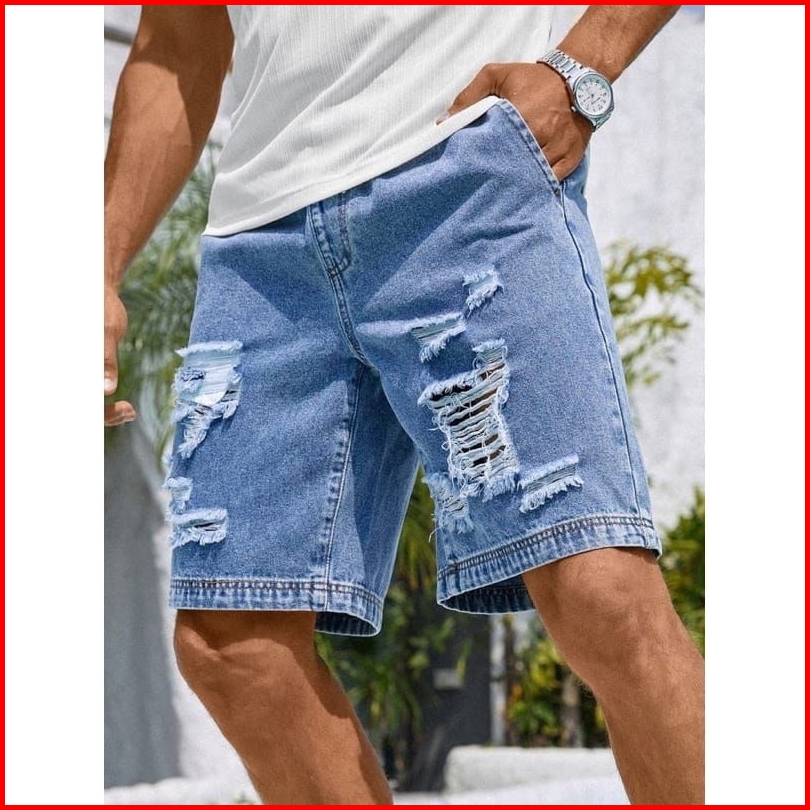 Celana Broadshort Jeans Sobek Celana Pendek Pria
