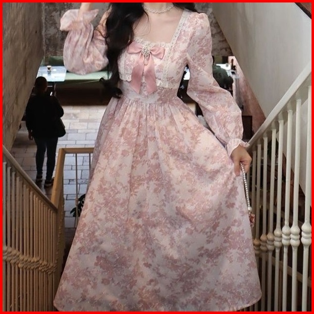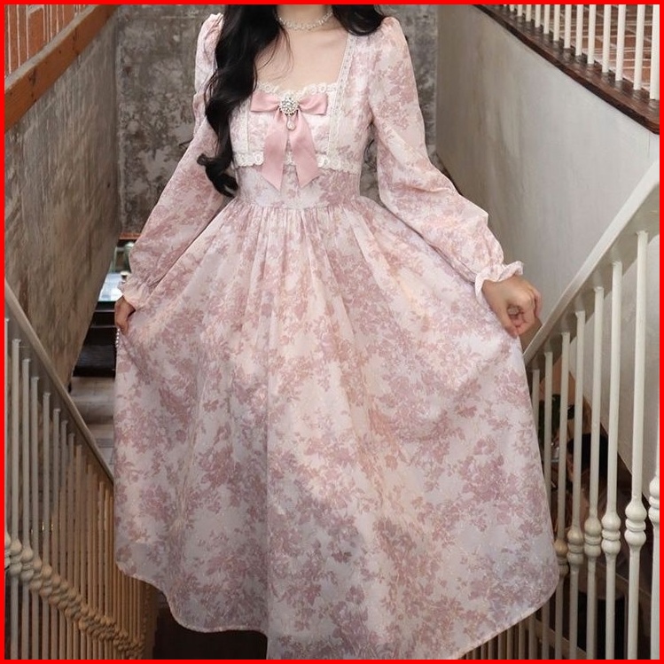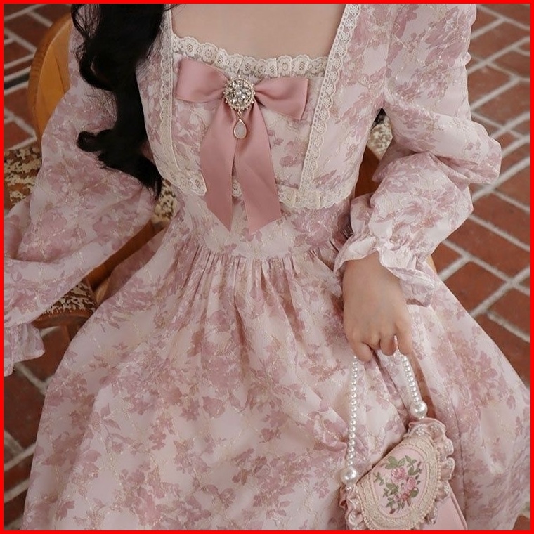 25oclock Gaun Bunga Merah Muda Gaya Bangsawan