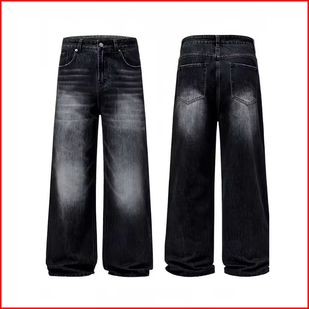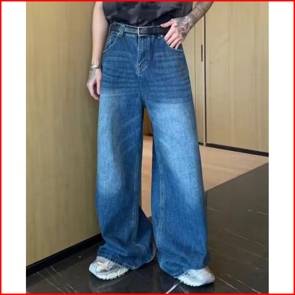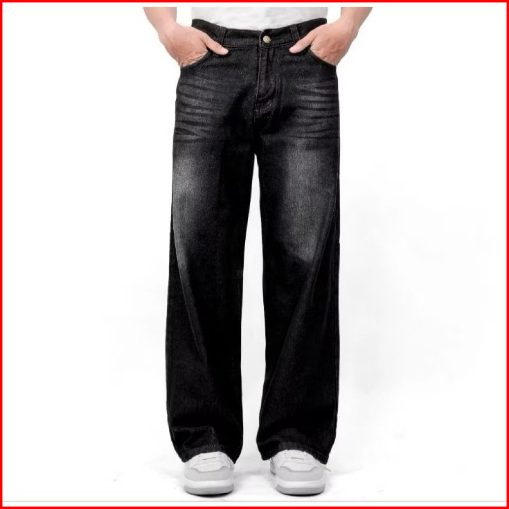 Celana Baggy Jeans Korean Style Whisker Wide Leg Skena Loose Fit
