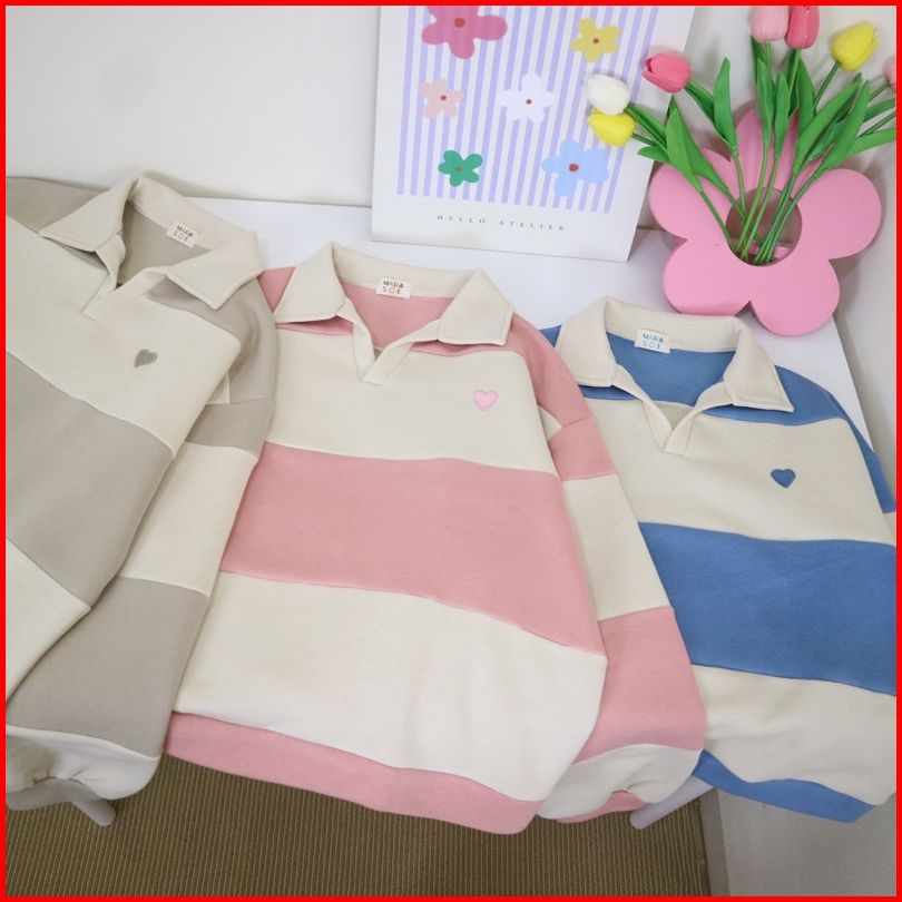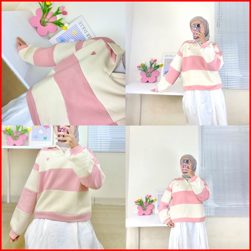 Marasoe Rugby Stripe Sweater - Sweatshirt Sweater Rugby Polo Shirt Sweater Korean Casual Sweater Berkerah Formal Sweatsh