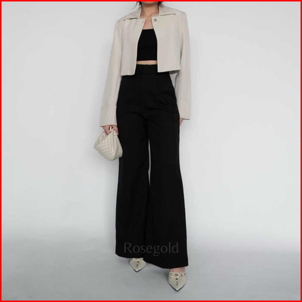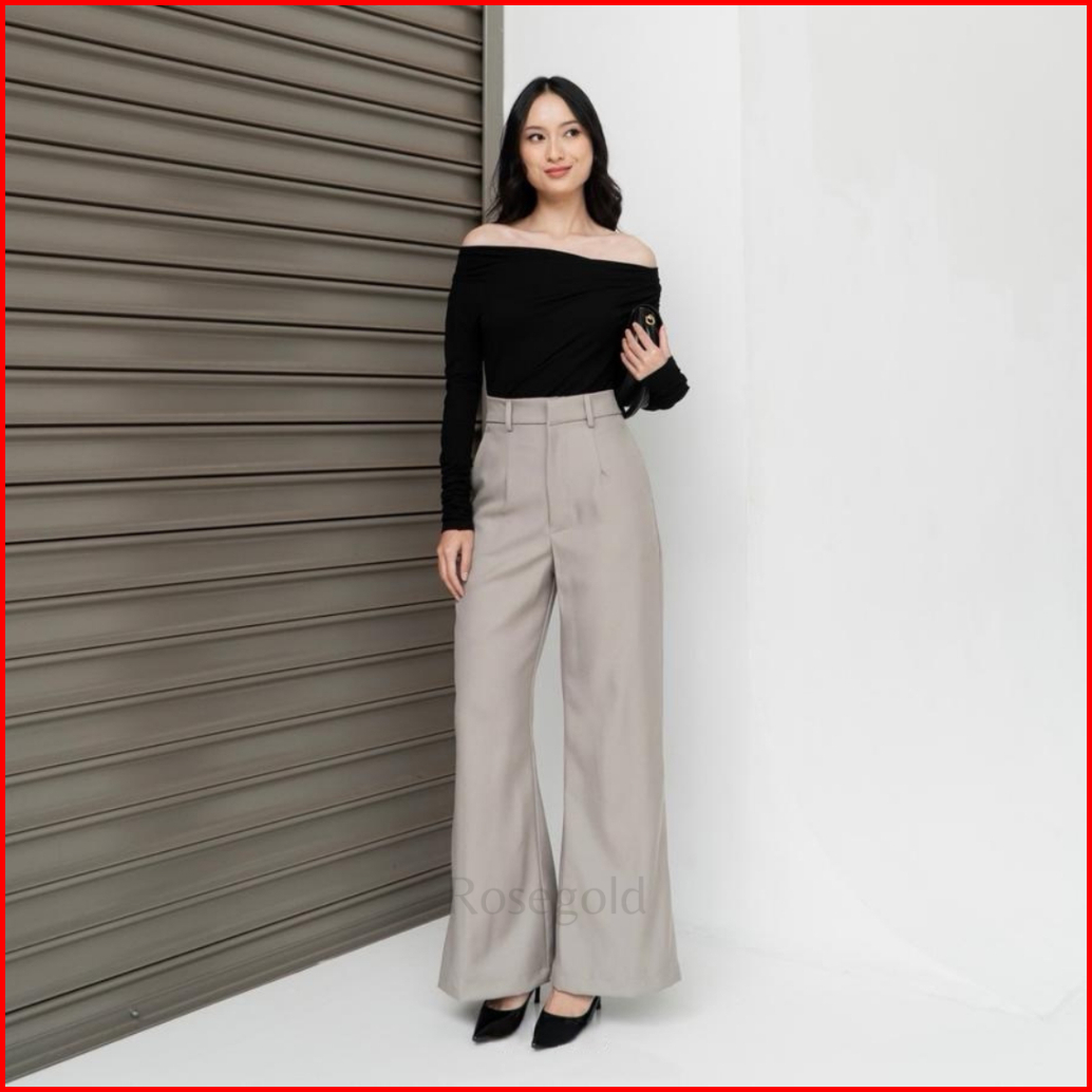 Etta Pants Highwaist Flare Pants Loose Cutbray Korean Style Celana Kantor Semi Wol Wanita Premium