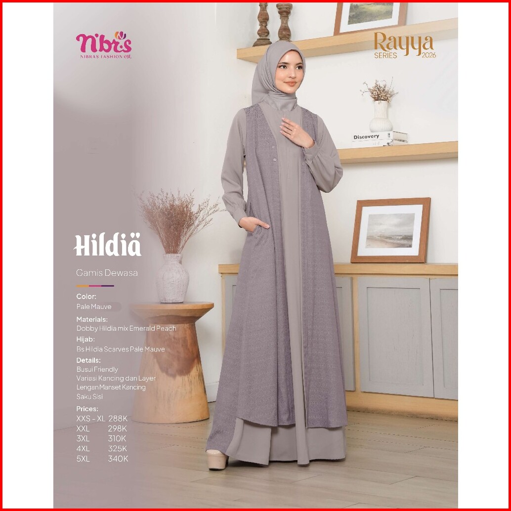 Nibras - Hildia Pale Mauve Seragam Keluarga Set Sarimbit Lebaran Busui Friendly Lengan Manset