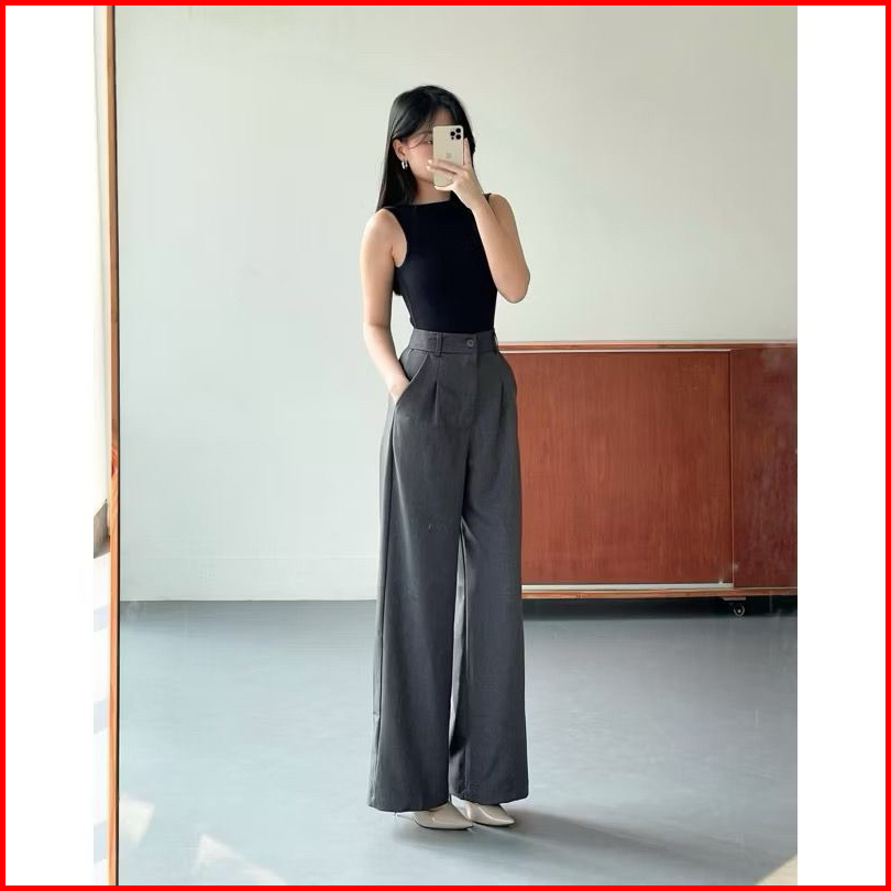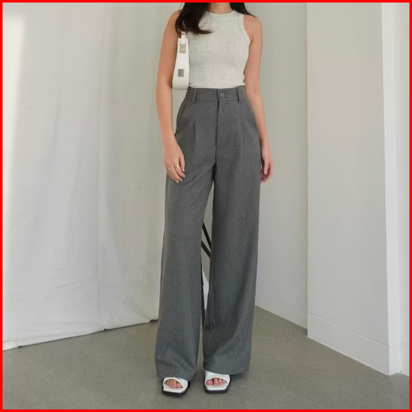 Viona Pants - Celana Highwaist Trousers Loose Pants - Celana Kulot Wanita Anti Kusut - Celana Kerja Kantor Formal - Cull